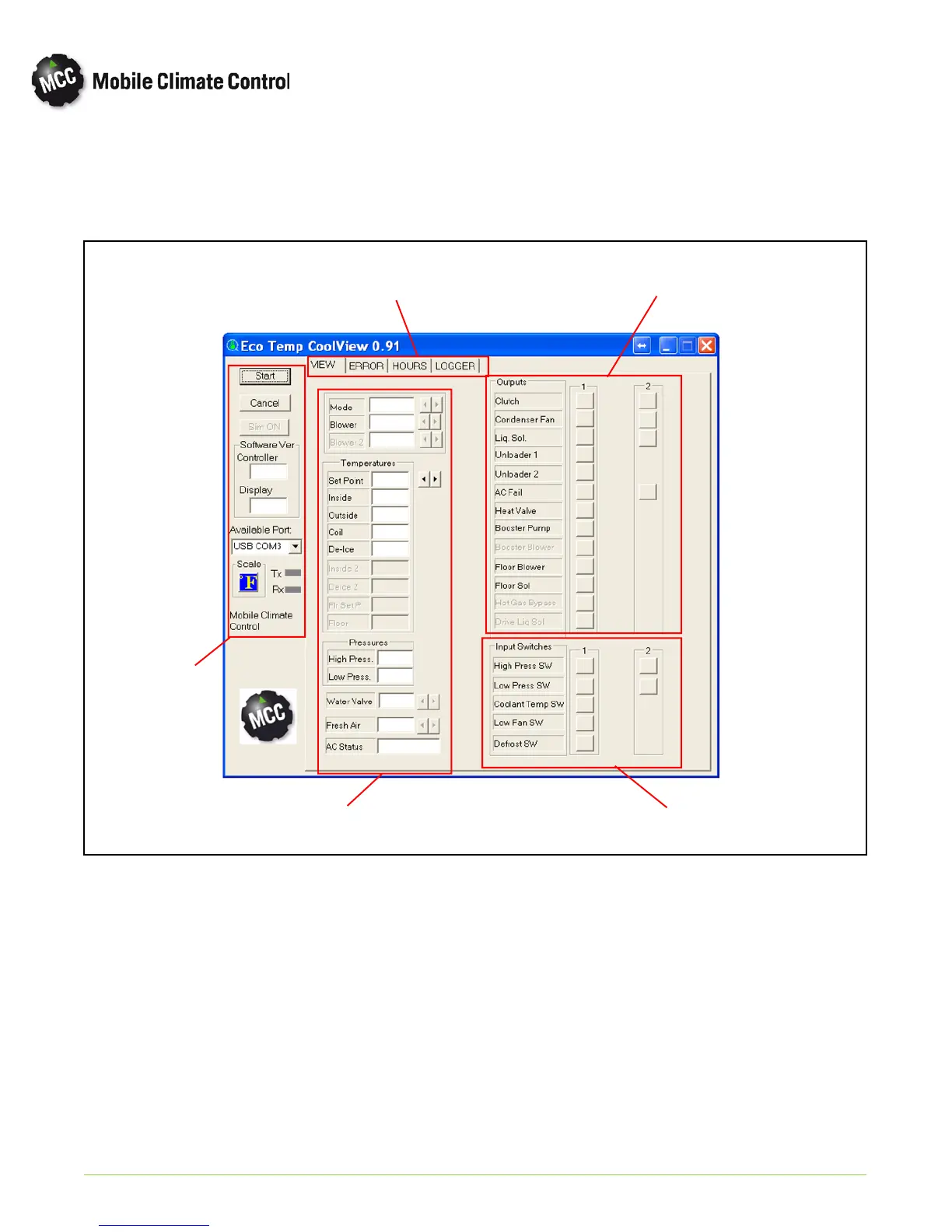 MCC Coolview is designed to assist in monitoring, diagnosing and troubleshooting of the vehicle HVAC