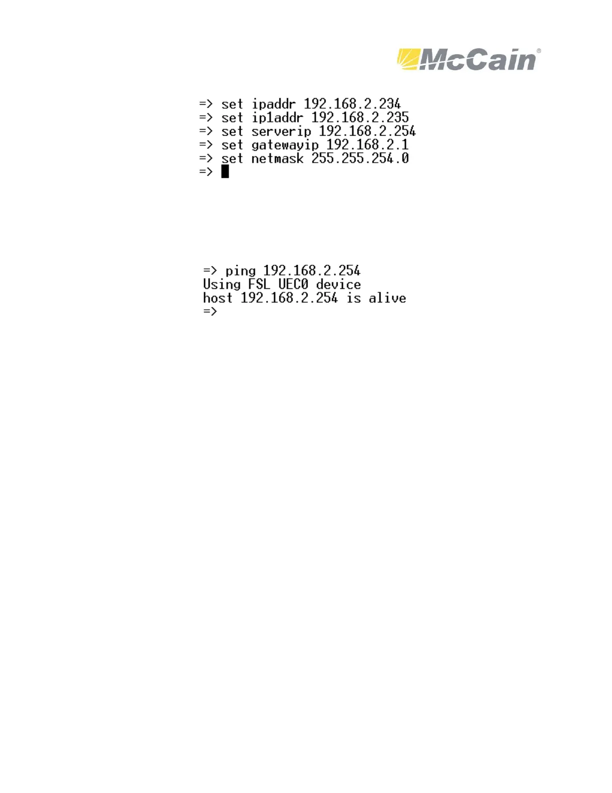 Please note: ipaddr, ip1addr are the IP addresses for Ethernet Port 1 and Port 2. serverip is the