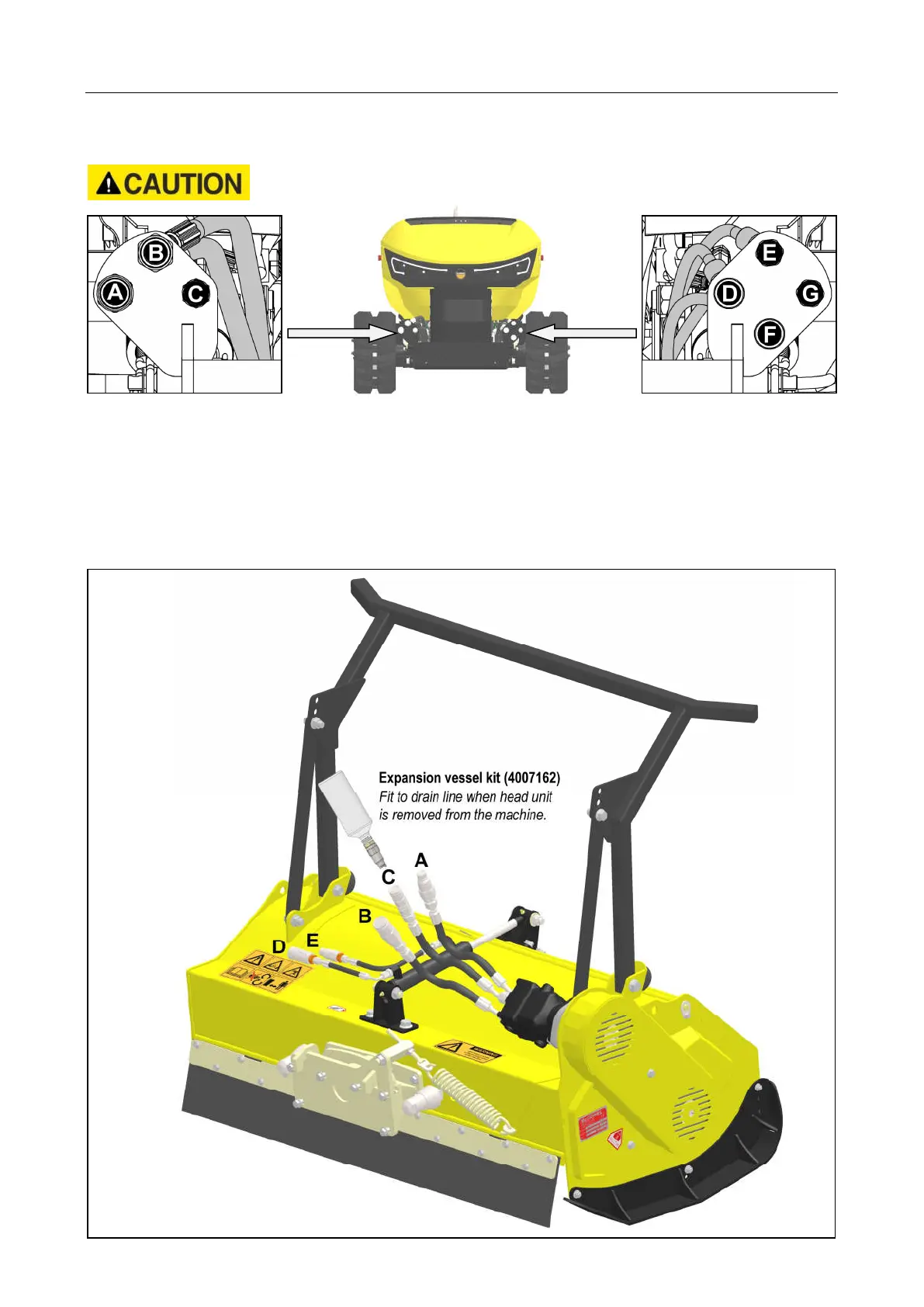 points (D & E) as indicated in the diagram above. The pressure and drain line hoses (A, B