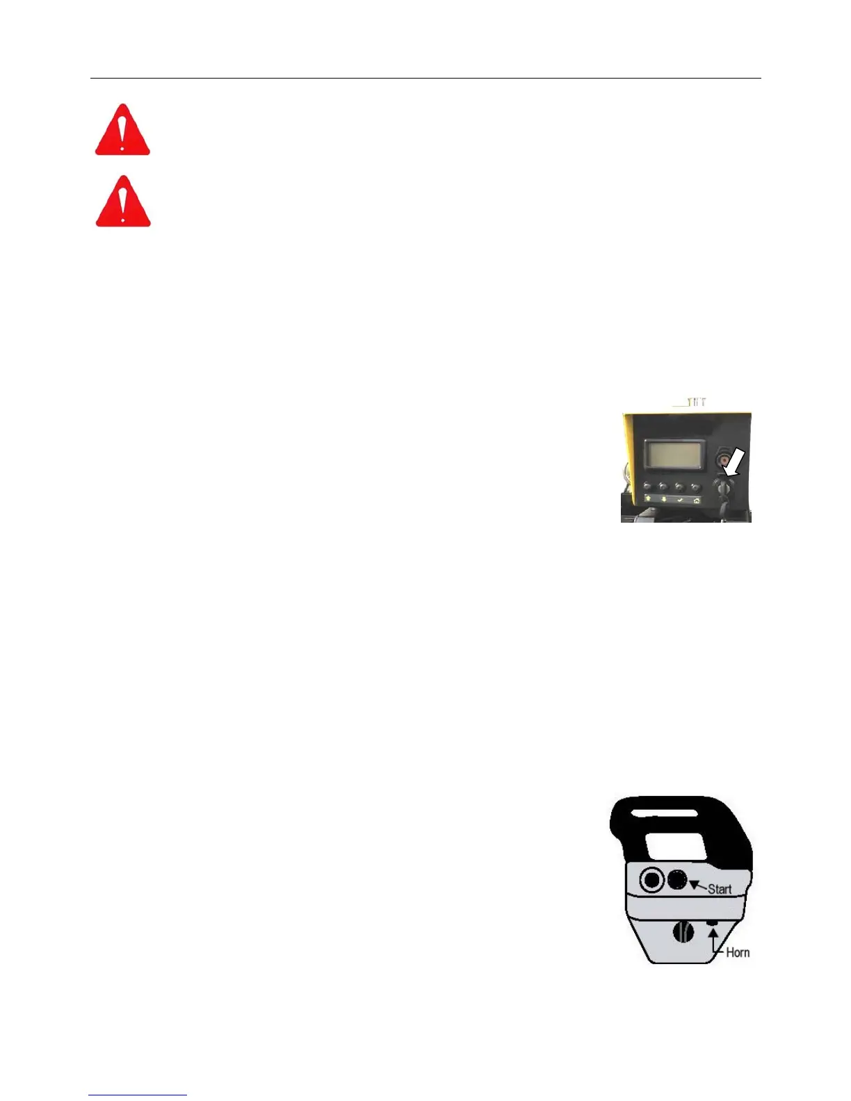 NOTE: Ignition key on the machine must be turned to the pre-starting position.