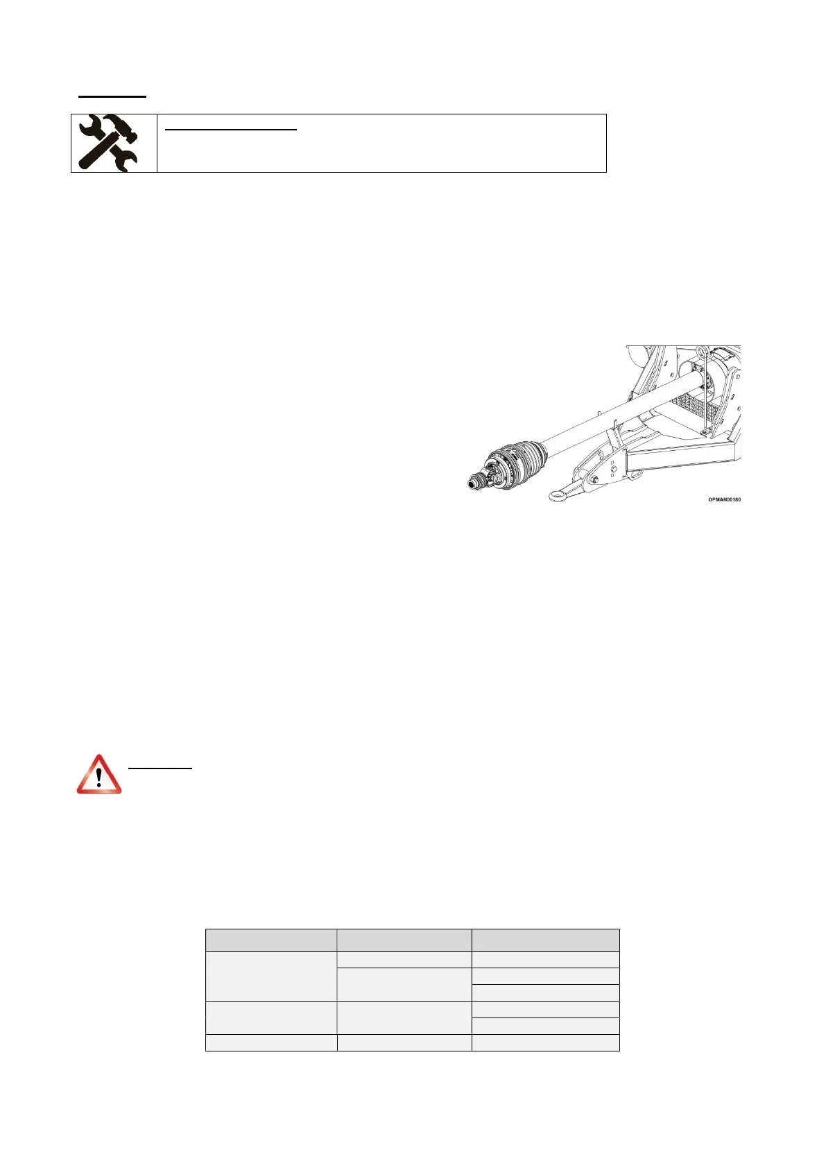 specification for the machine and tractor. See Table 4.2 for input shaft speed options and the spline quantity