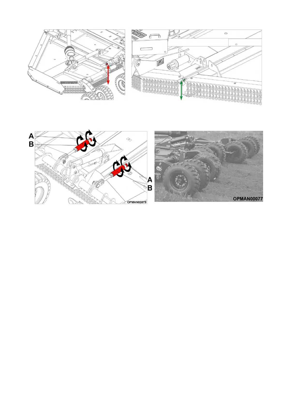 With the machine in the working position and the wings folded down it may be necessary to alter the height of