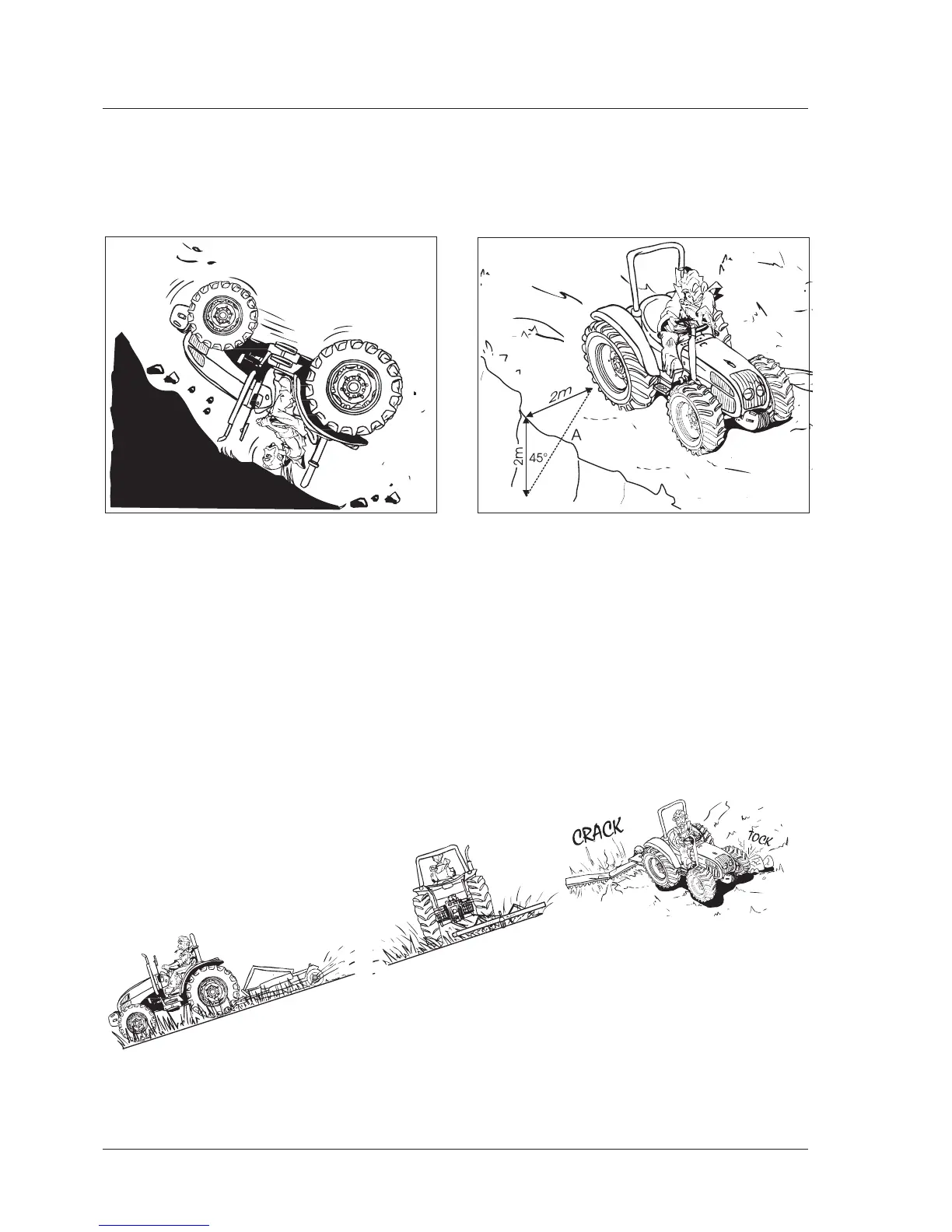 on the uphill side. When operating near ditches or