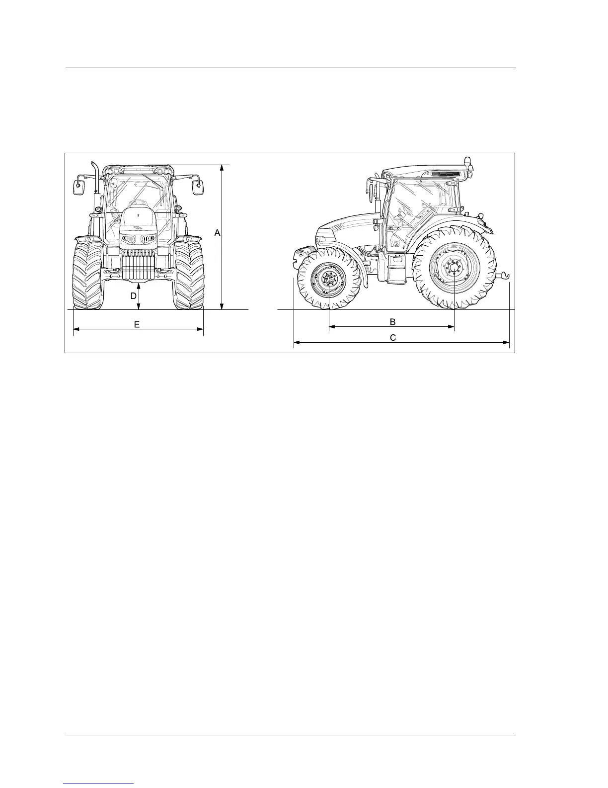 NOTE: Overall width of the tractor may change according to the type of axle and to the track width settings.