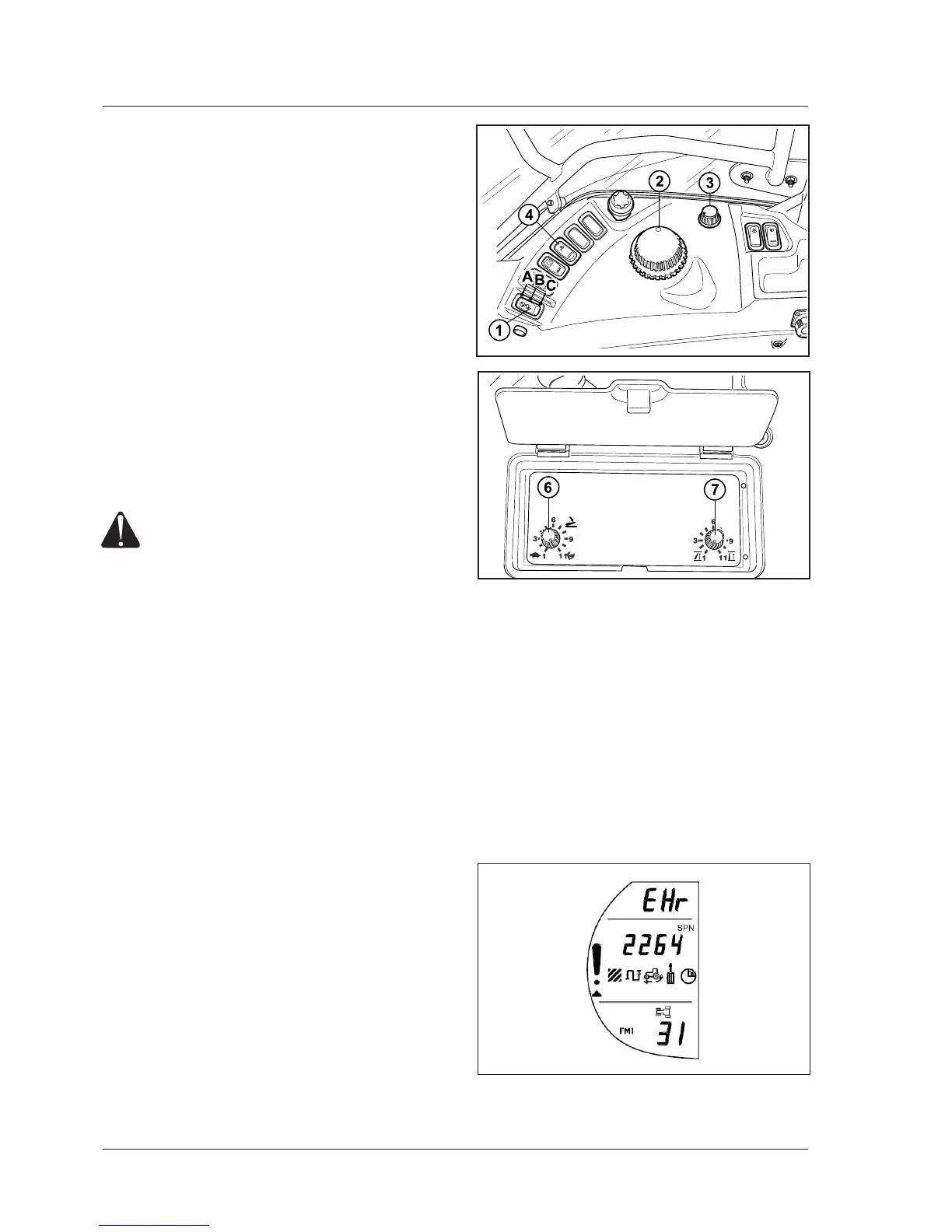 WARNING: If the control lever (1) is moved