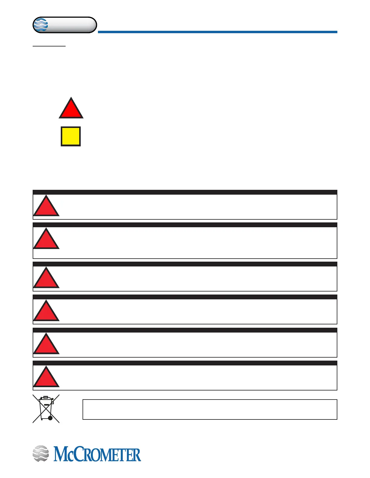When installing, operating, and maintaining McCrometer equipment where hazards may be present, you must protect