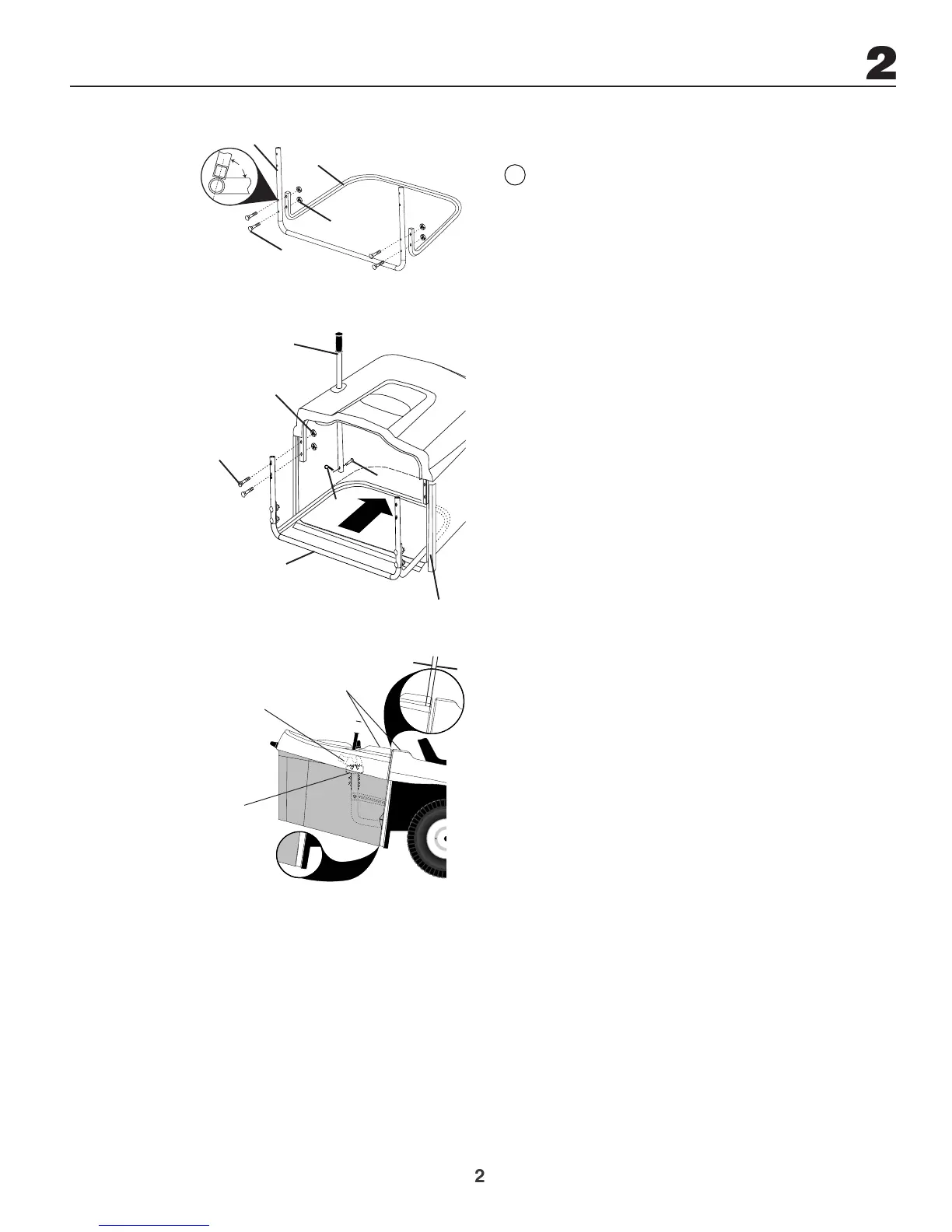 • Assemble front and lower bagger tubes using four (4)