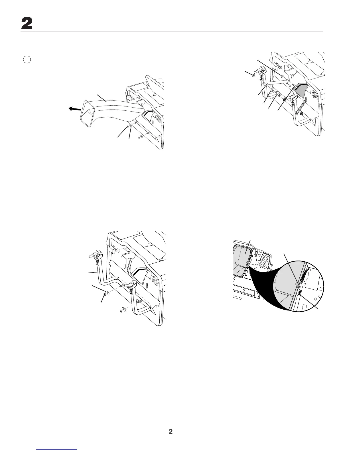 • Retirer la goulotte d'éjection d'herbe. Pour ce faire,libérer