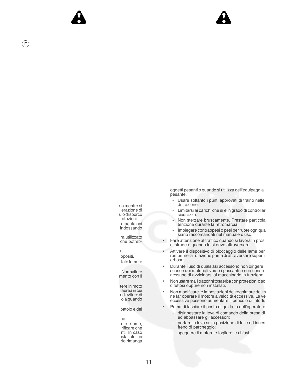 In caso di trattorini tosaerba a lame mul ti ple prestare la