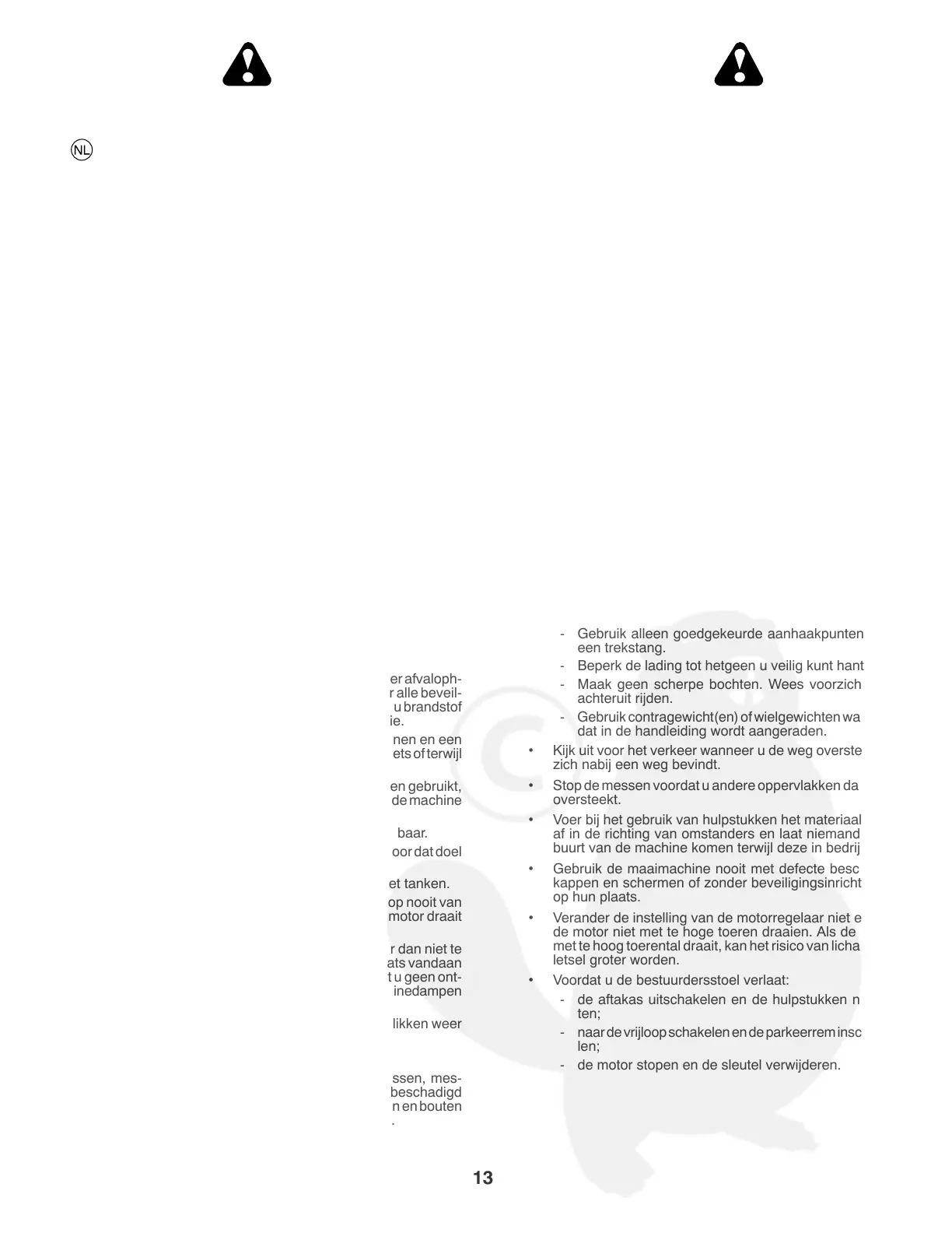 structies, de maaimachine niet gebruiken. Het is mogelijk