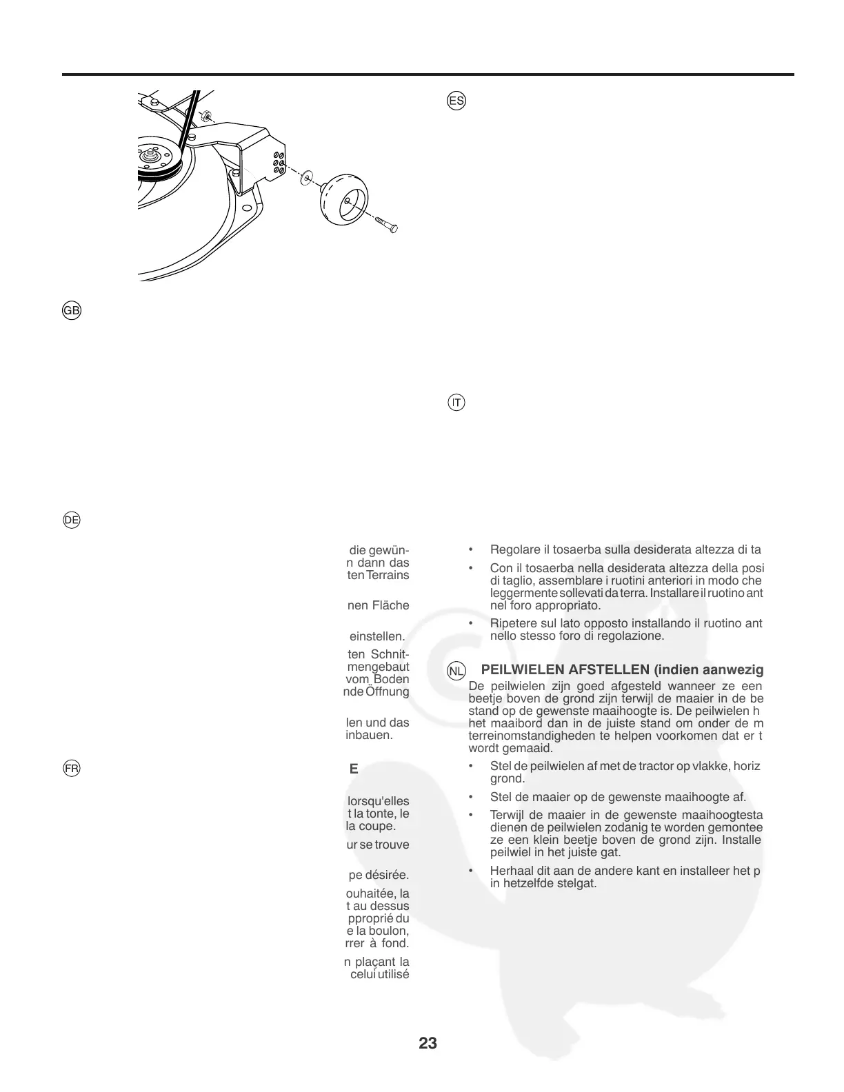 stand op de gewenste maaihoogte is. De peilwielen houden