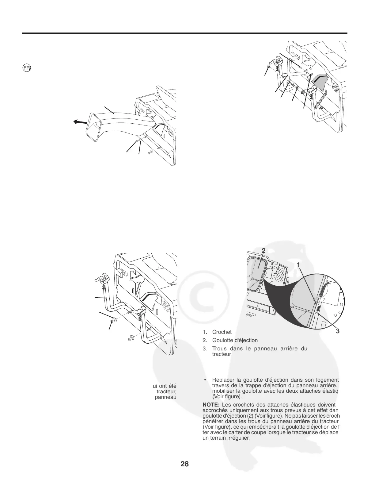 goulotte d'éjection (2) (Voir figure). Ne pas laisser les cro chets