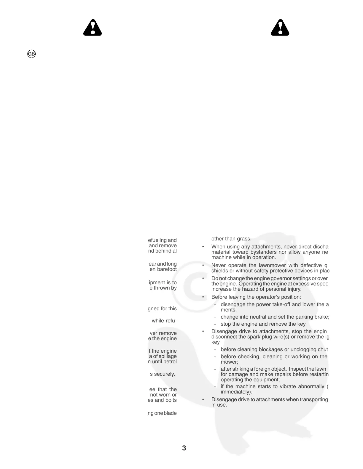 • Before attempting to start the engine, disengage all blade