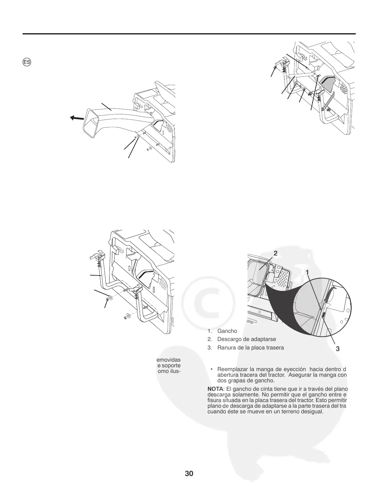 abertura tracera del tractor. Asegurar la manga con las