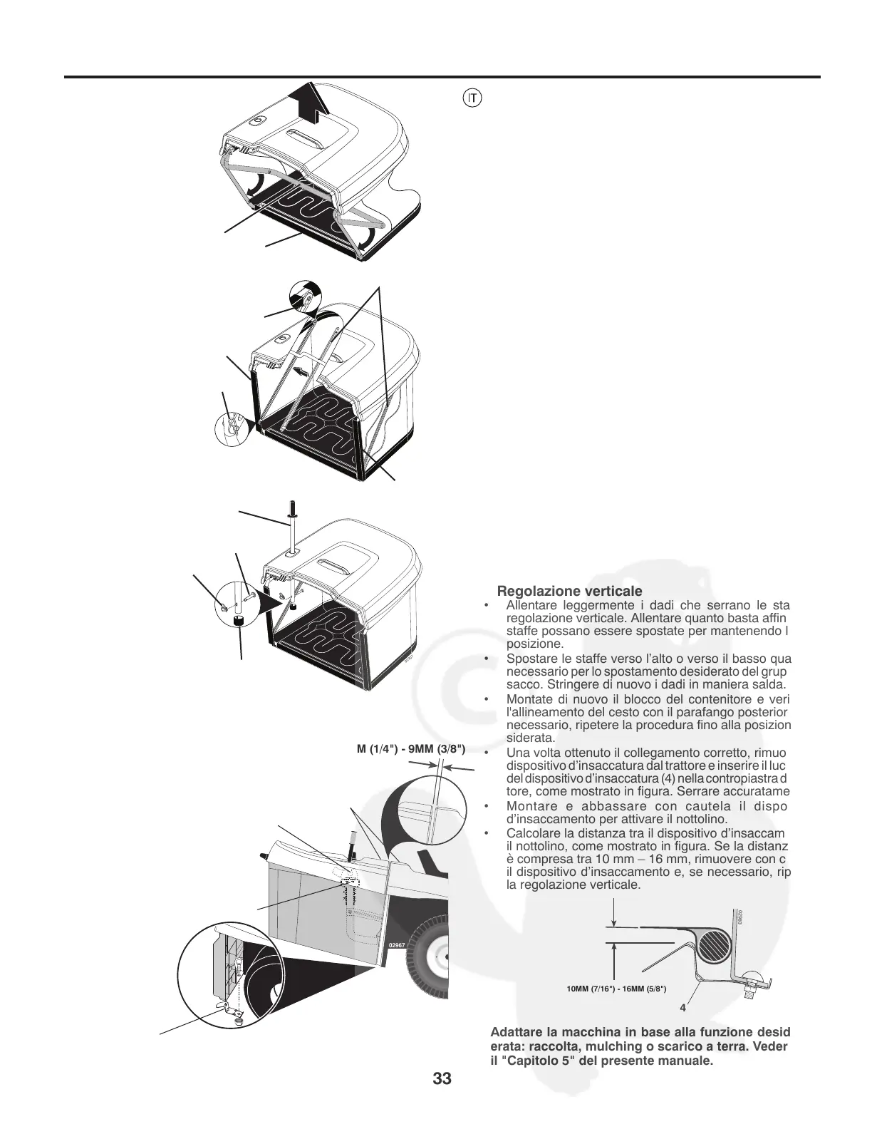 superiore del parafango. Per regolare la posizione del cesto: