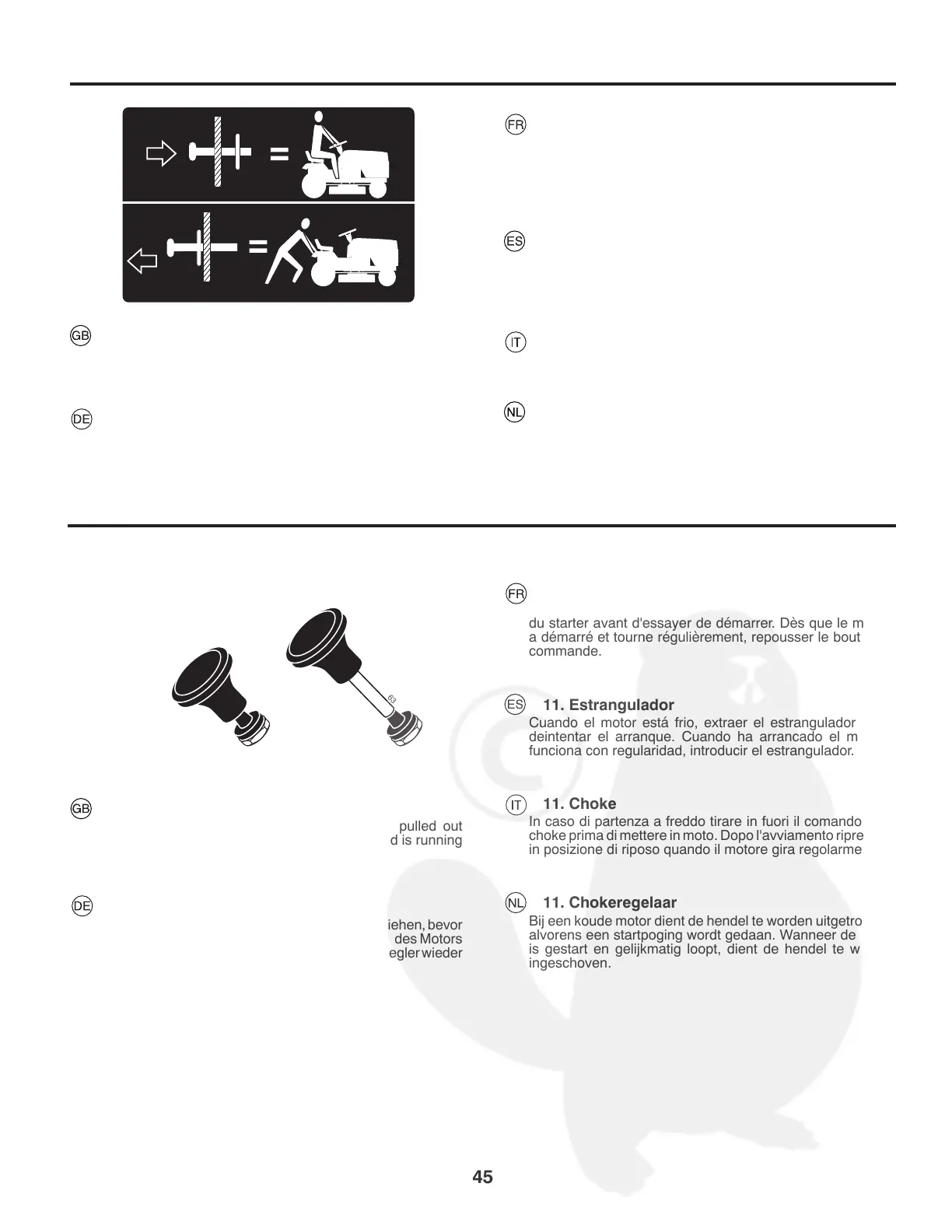 Bij een koude motor dient de hendel te worden uitgetrokken,