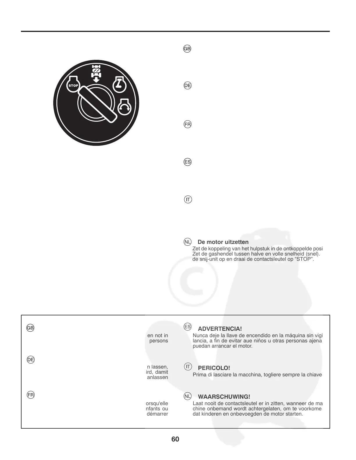 dat kinderen en onbevoegden de motor starten.