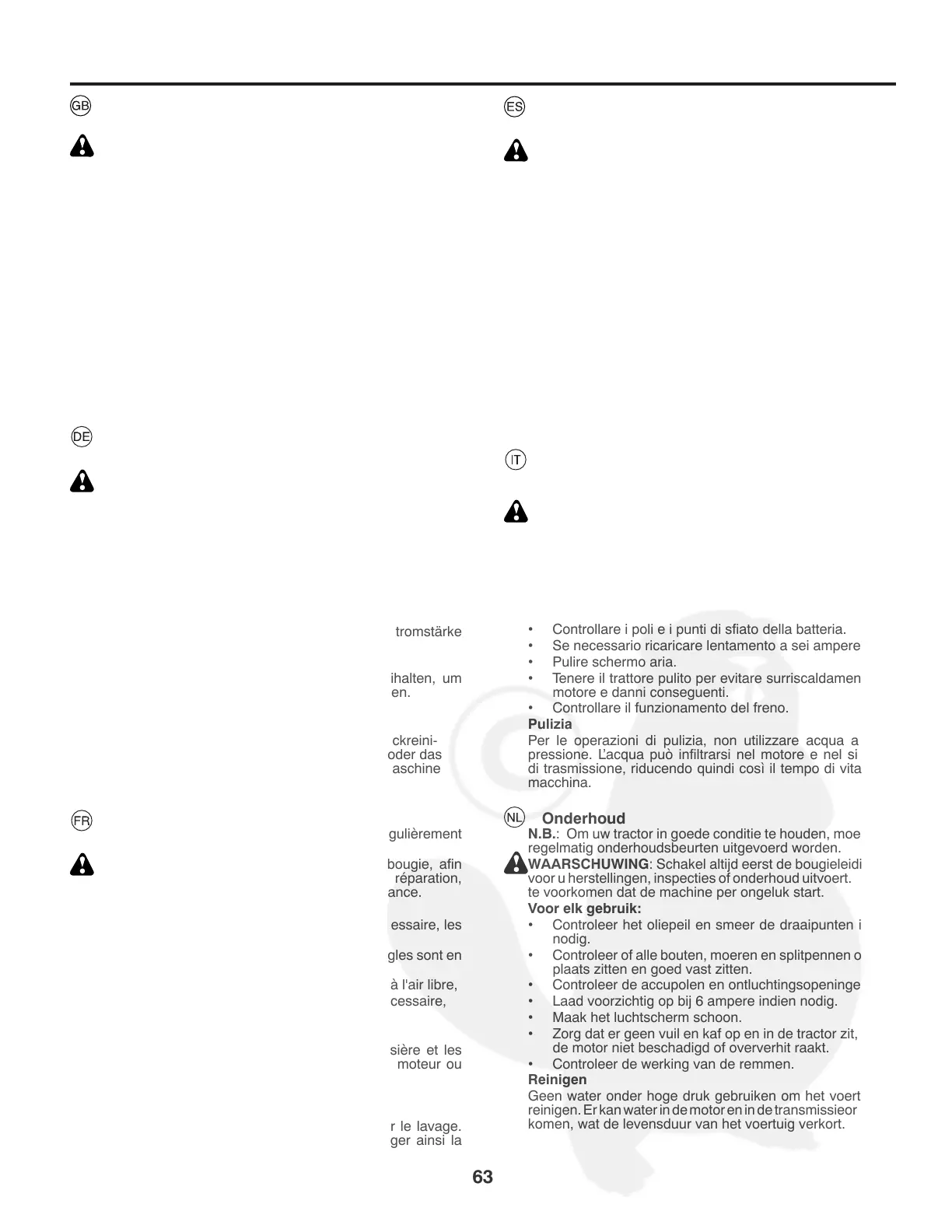 N.B.: Om uw tractor in goede conditie te houden, moeten er