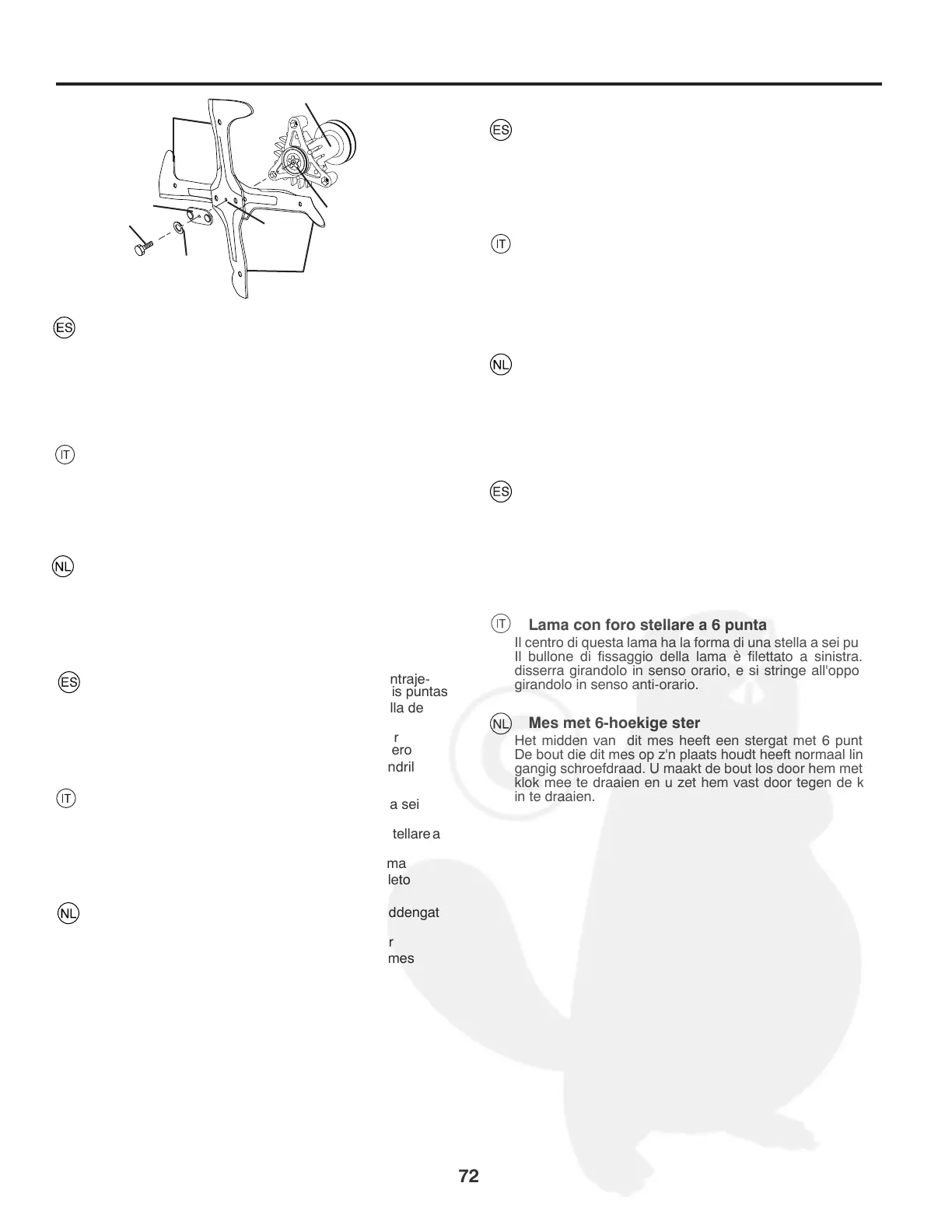 (5) puntas. El tornillo que liga esta cuchilla es dextrogiro
