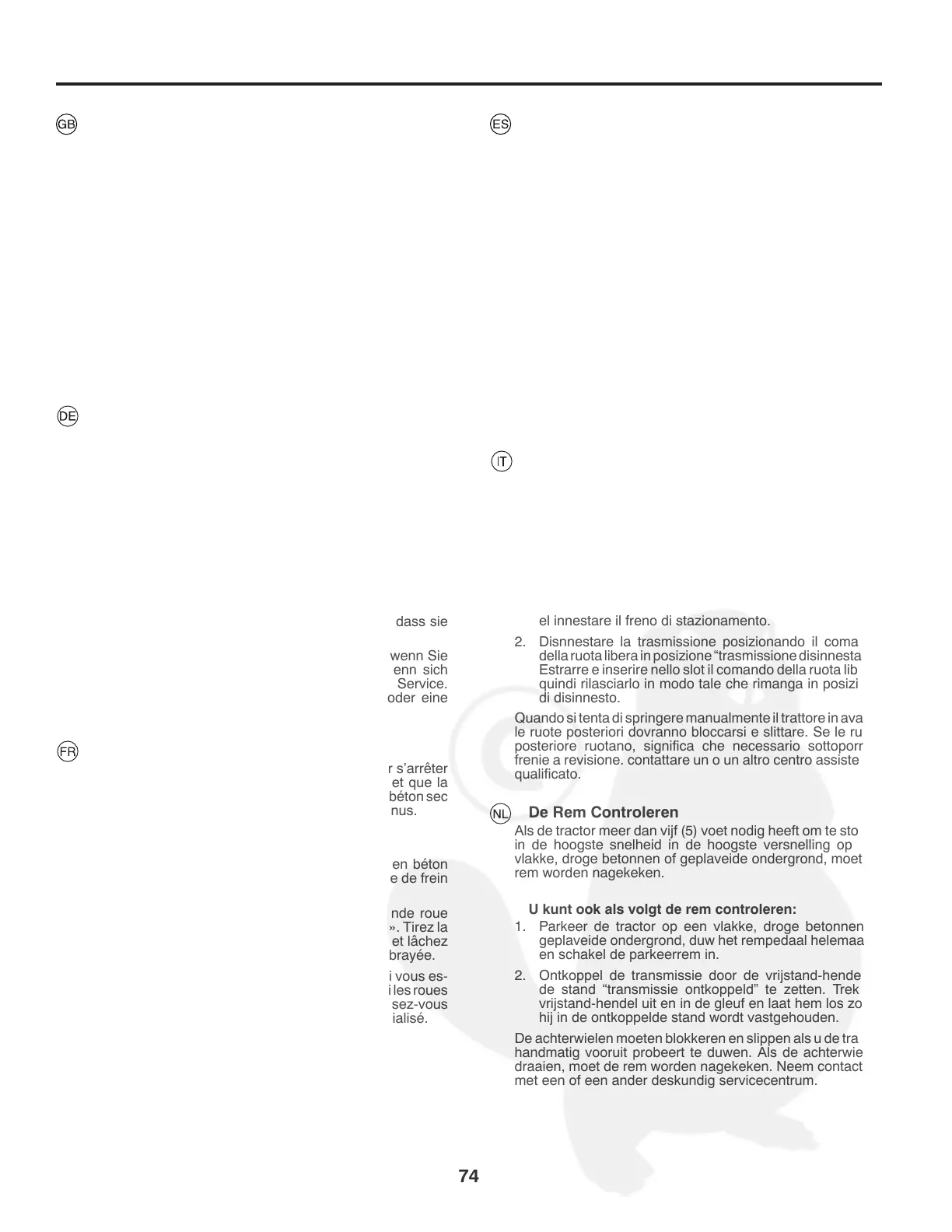 1. Parcheggiare il trattore su una superficie piana e asciutta,