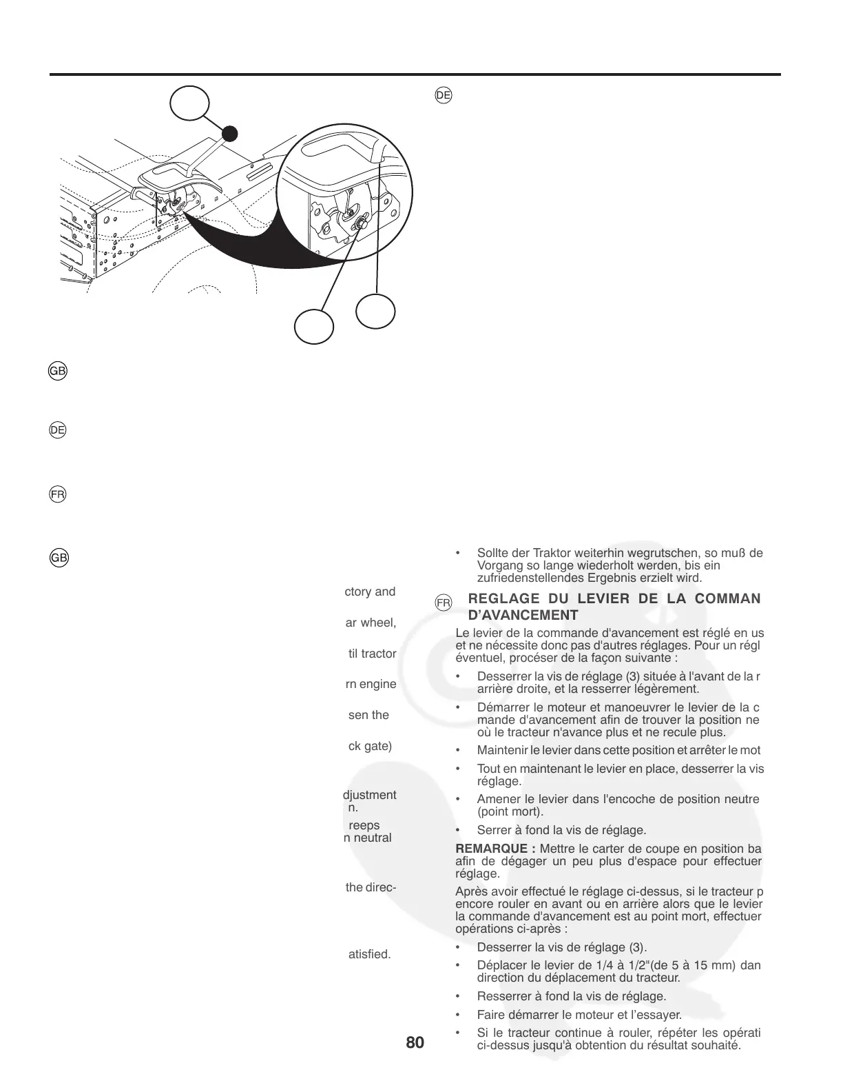 REGLAGE DU LEVIER DE LA COMMANDE