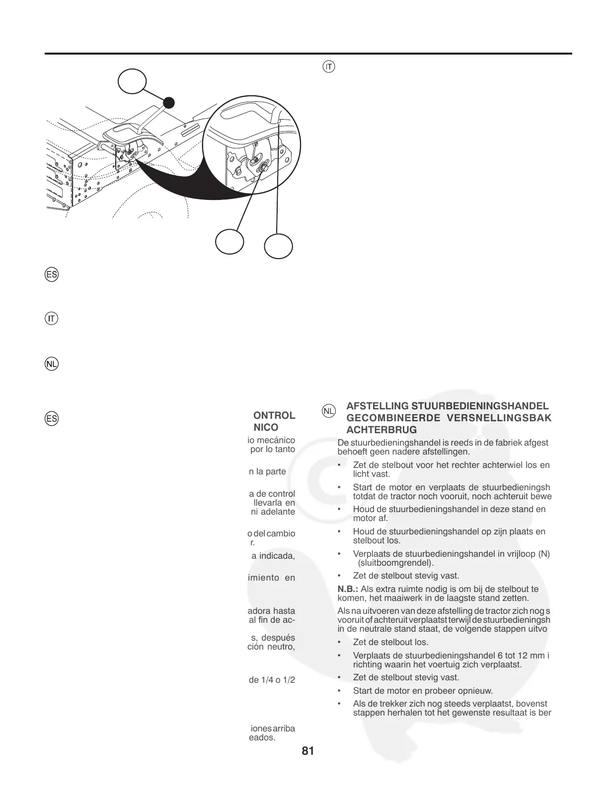 • Verplaats de stuurbedieningshandel in vrijloop (N)