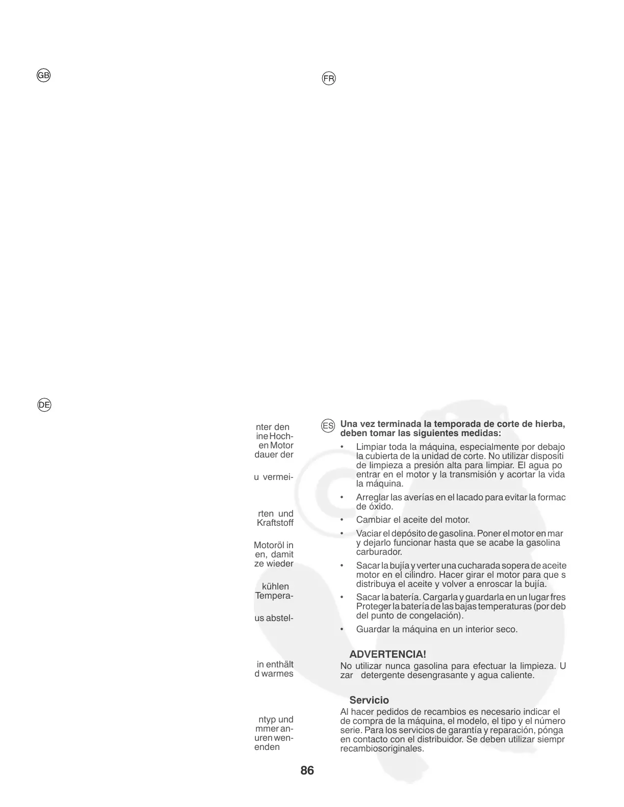 • Vaciar el depósito de gasolina. Po ner el motor en marcha