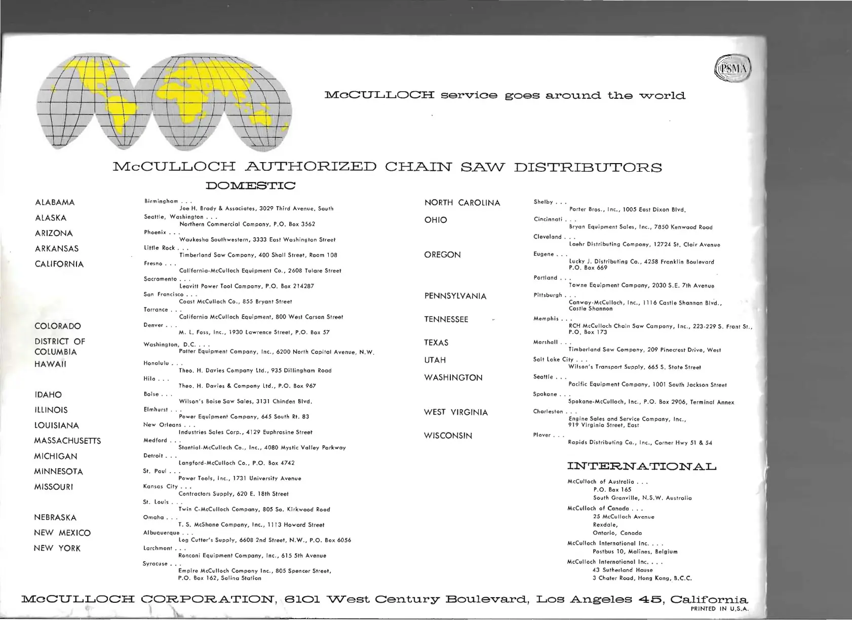 McCulloch 250 - AUTHORIZED DISTRIBUTORS AND SERVICE