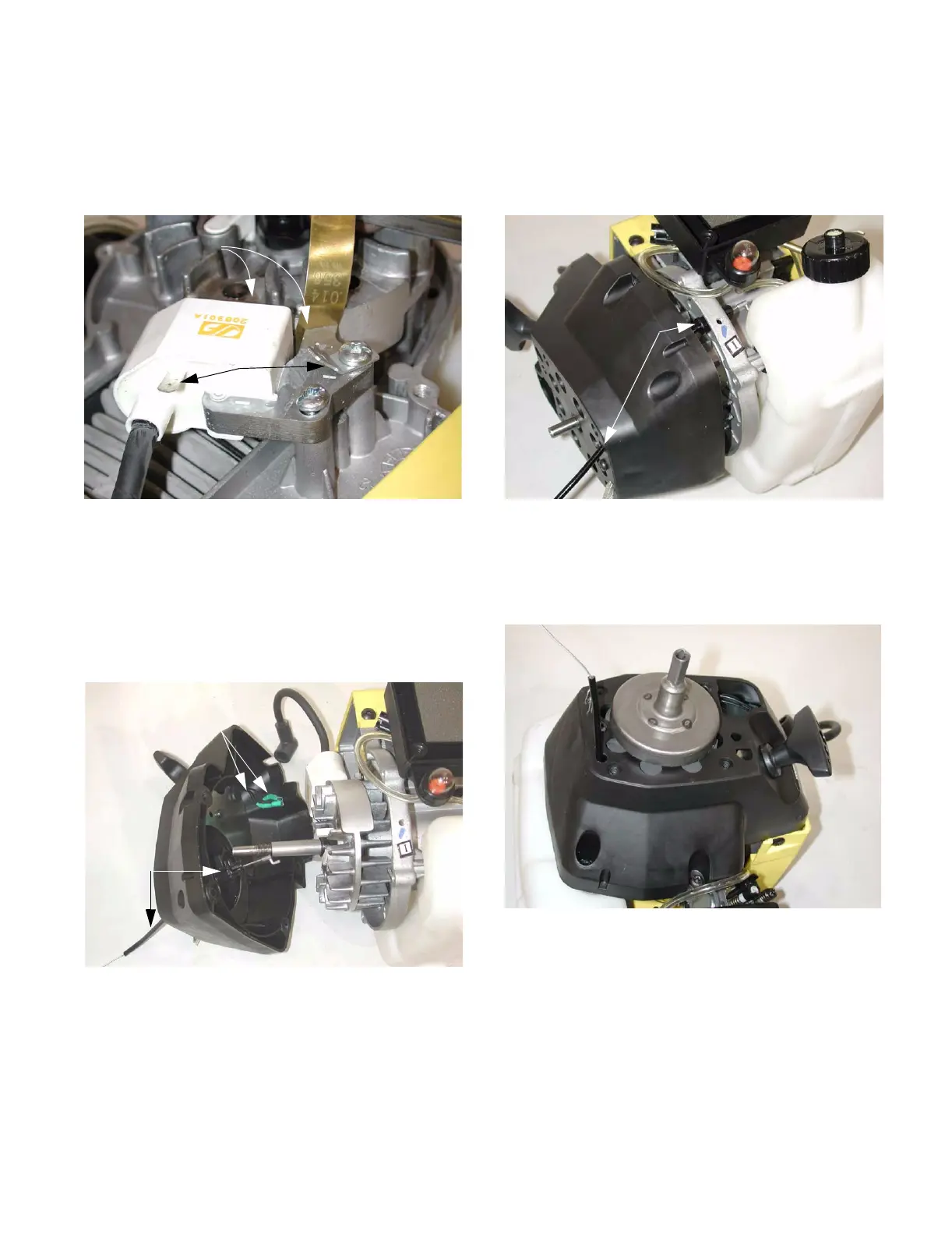the starter housing, throttle cable, and stop