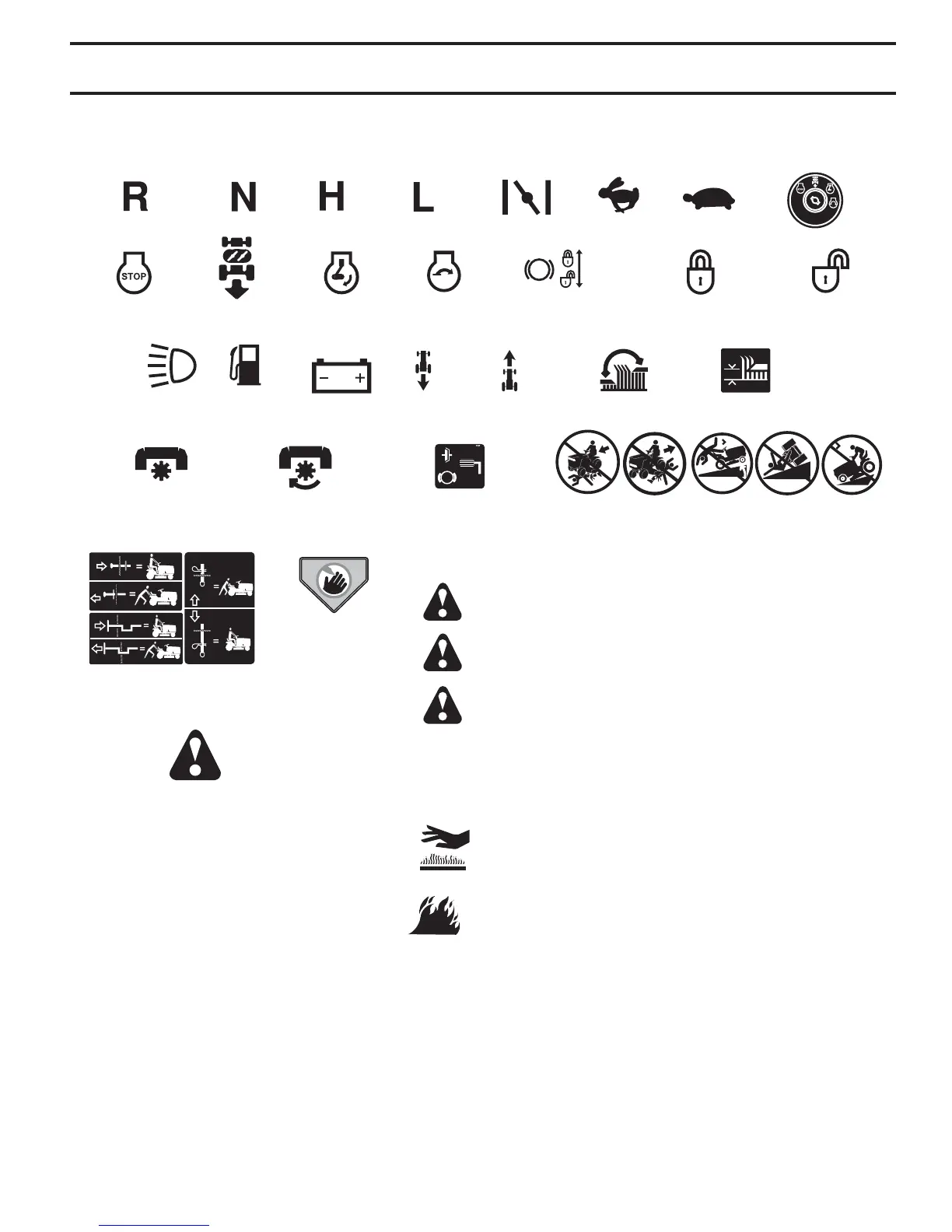 These symbols may appear on your tractor or in literature supplied with the product. Learn and understand their mean-