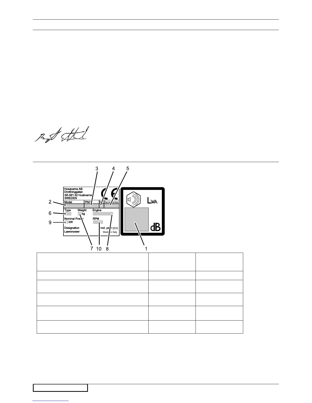 (Représentant autorisé de Husqvarna AB et Responsable pour la documentation technique)