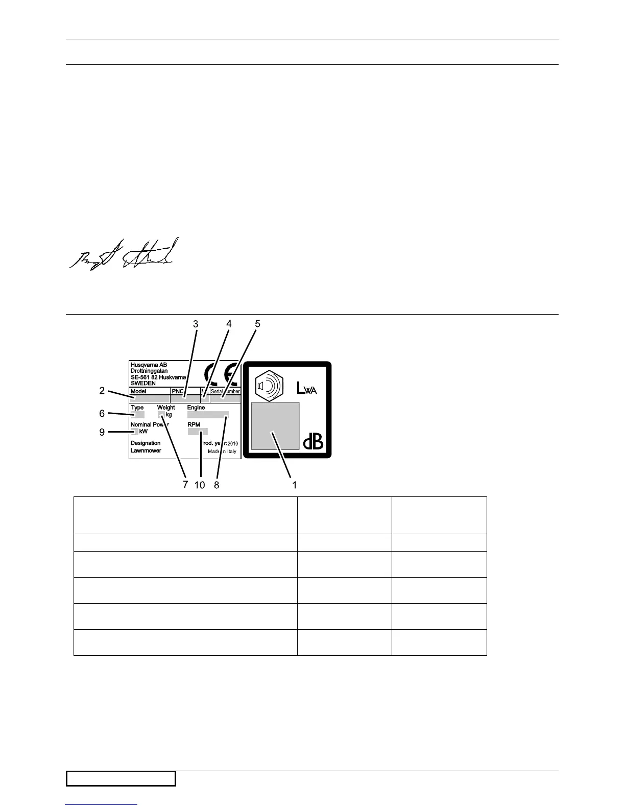(Husqvarna AB:n valtuuttama edustaja ja teknisestä dokumentaatiosta vastaava henkilö.)