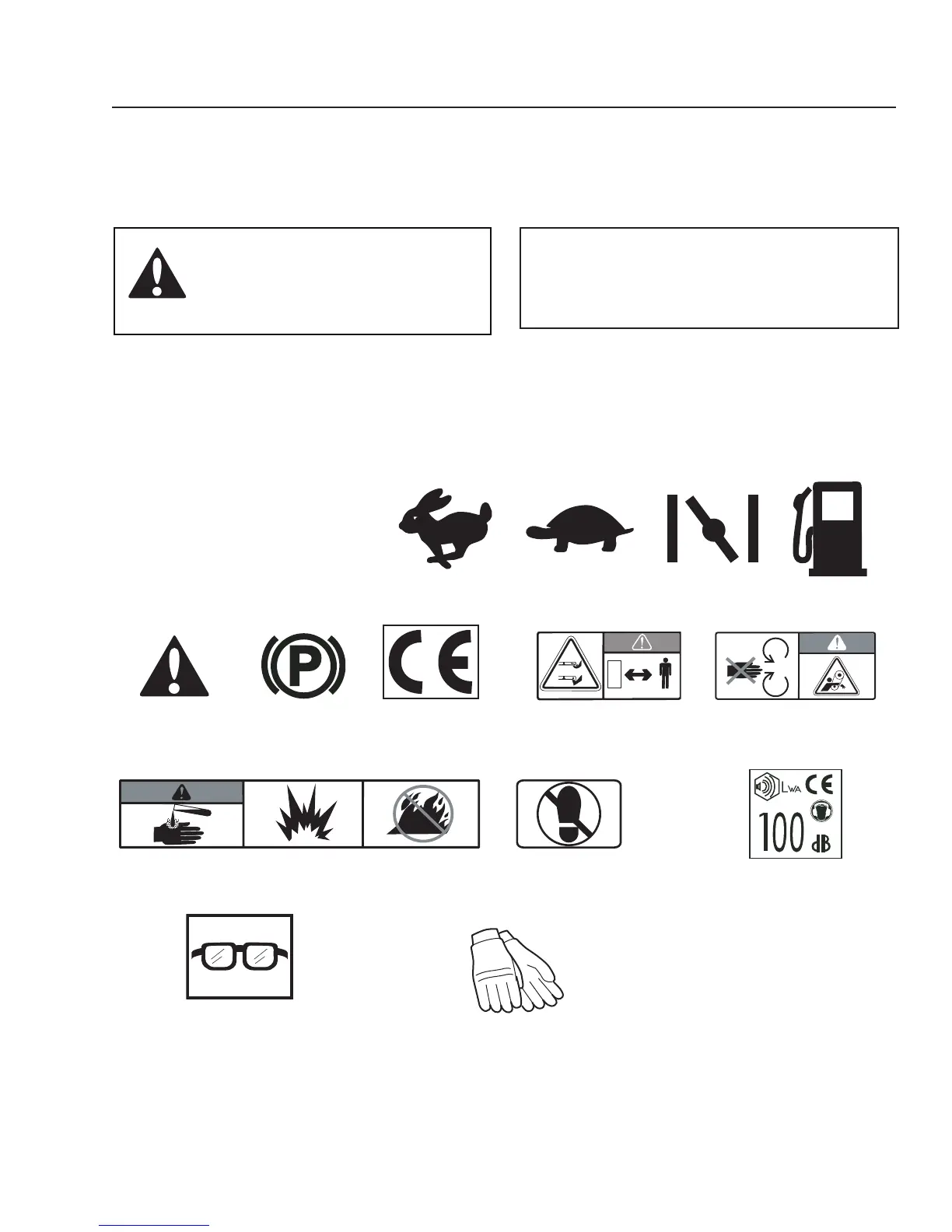 Warning! Parking Brake CE conformity Warning! Rotating blades, Do not touch parts