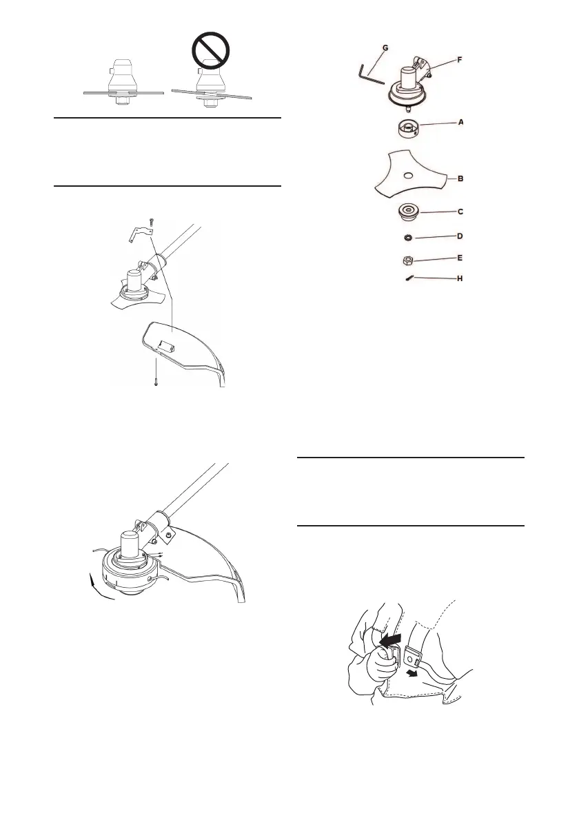 1. Instale o suporte superior (A), a lâmina de relva (B),