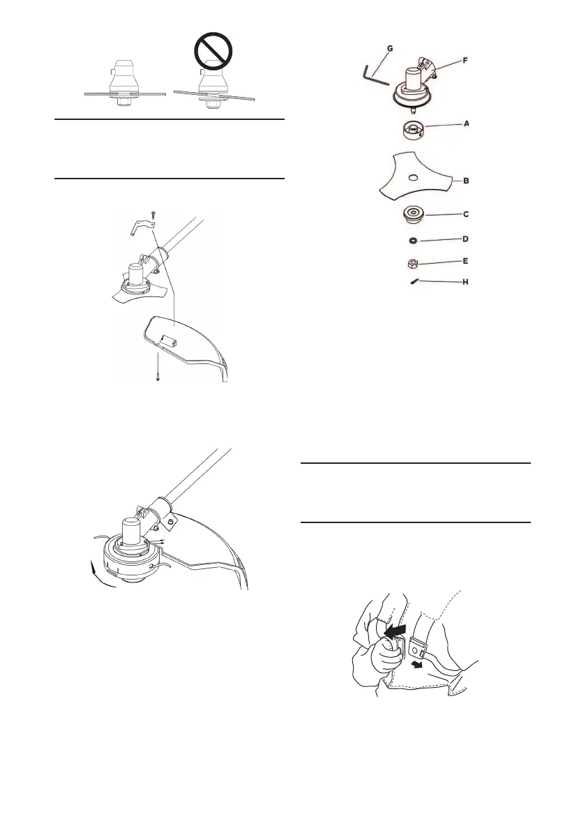 1. Monter den øverste holder (A), græsklingen (B),