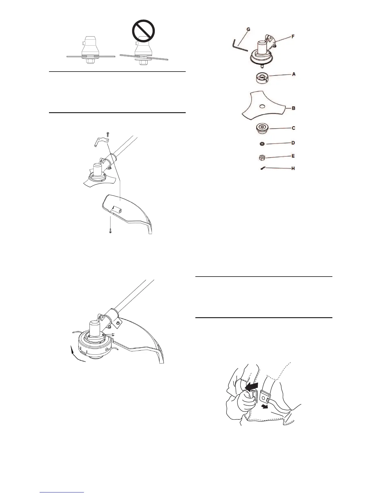 1. Instale o suporte superior (A), a lâmina de relva (B),