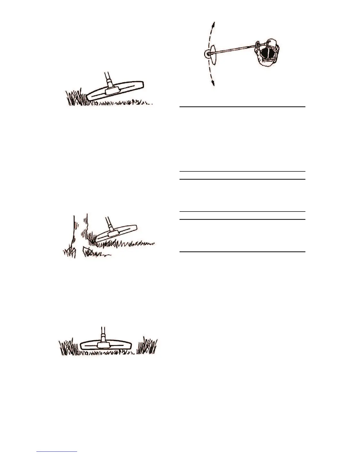 Ɣ Håll trimmerhuvudet strax ovanför marken och luta