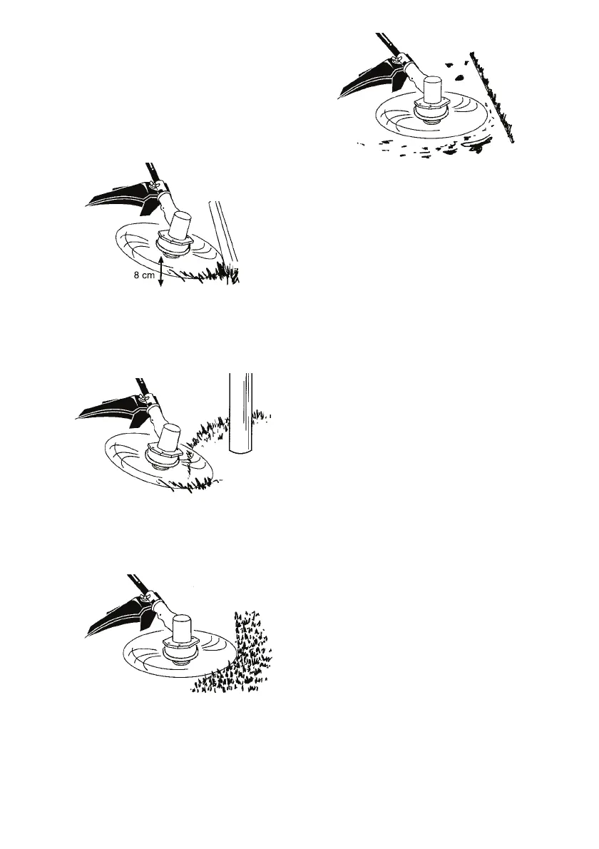 te vegen. Houd de trimmerdraad parallel aan en boven