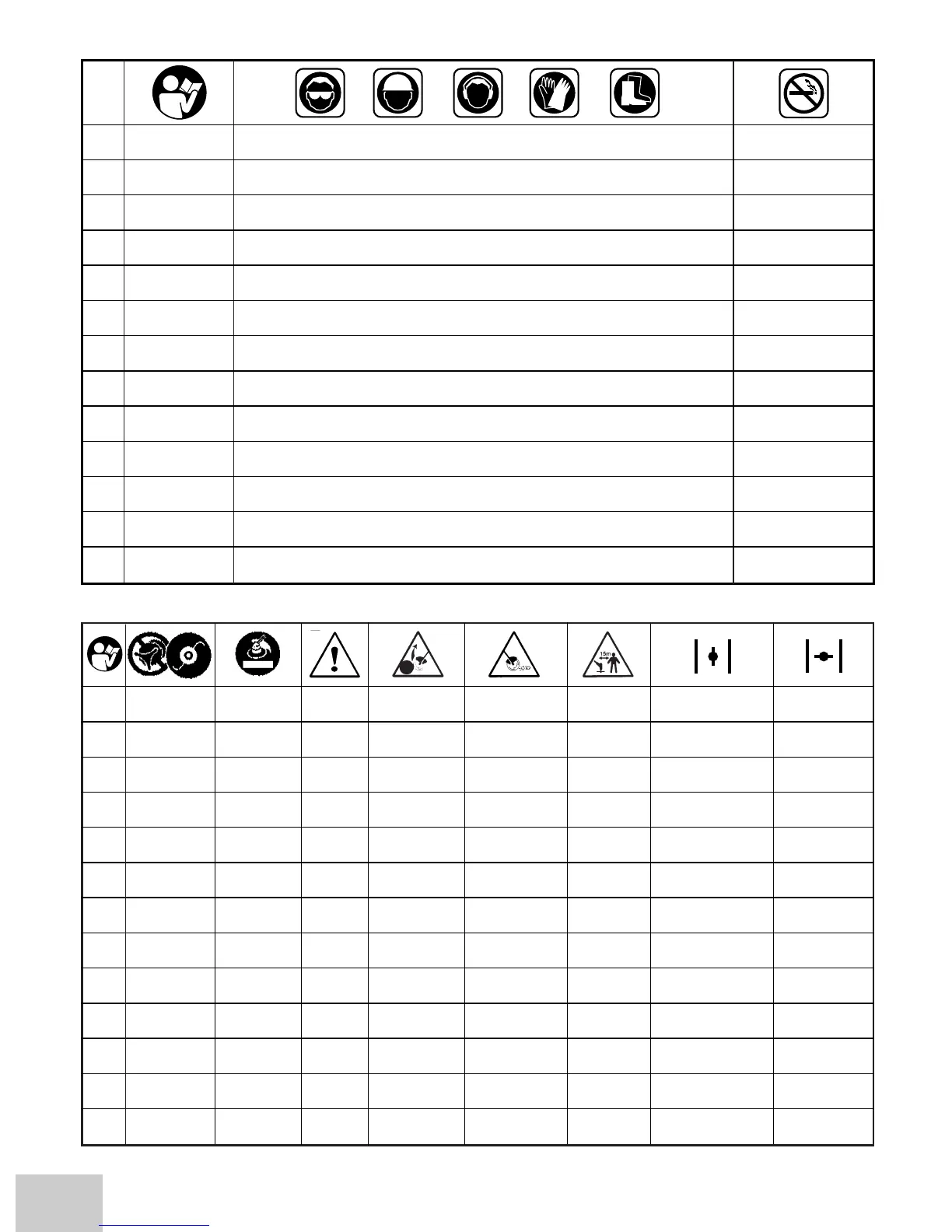 Do not use Maximum blade Warning Blade Beware of Maximum Choke fully opened Choke closed