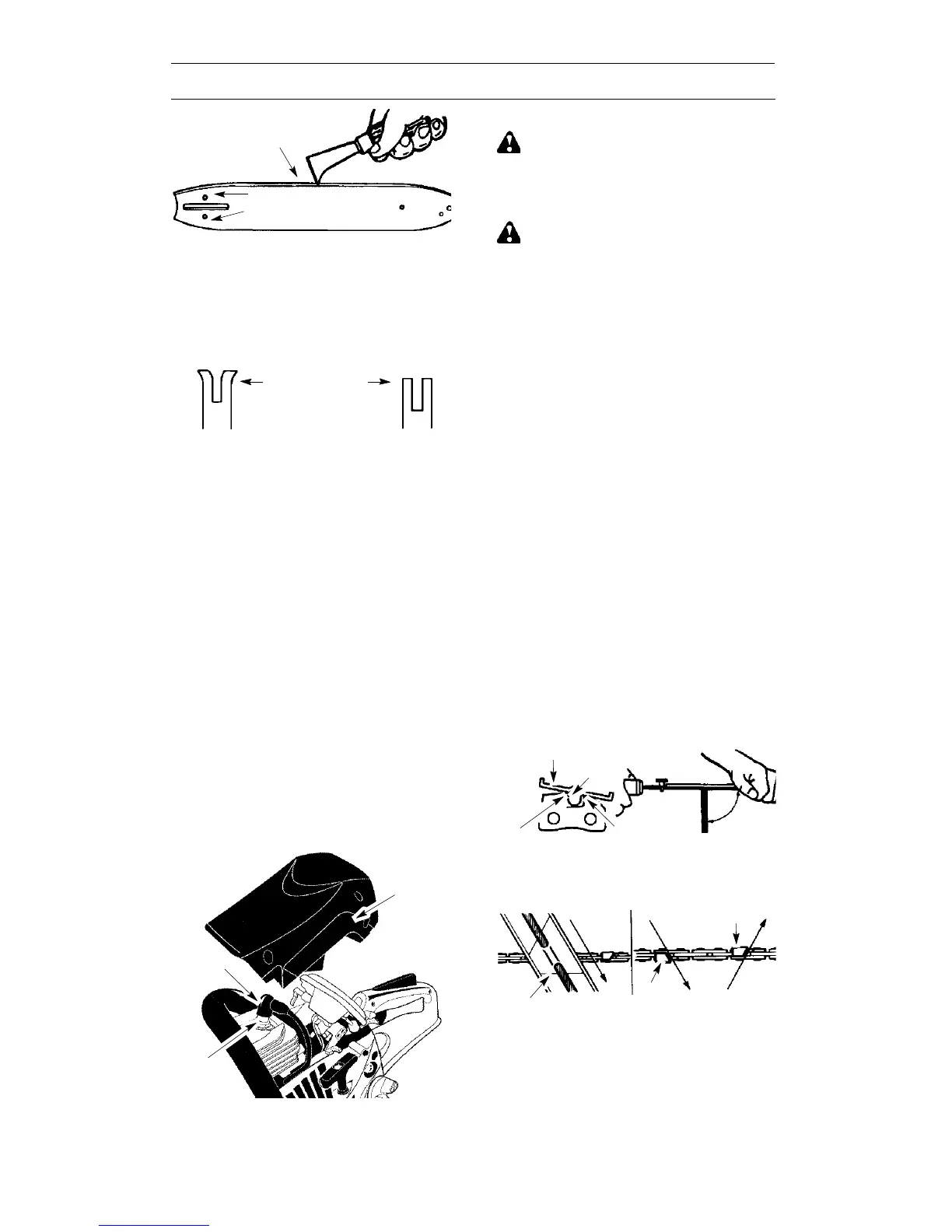 S Pinching the saw chain along the top ofthe