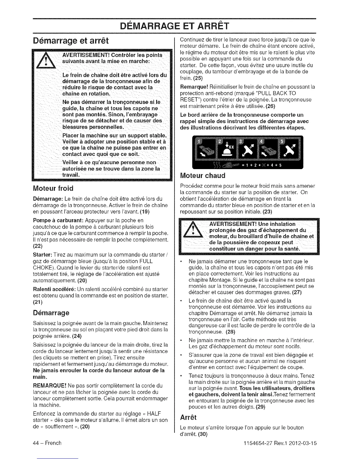 Demarrage: Le frein de chatne doit _tre activ6 Iors du