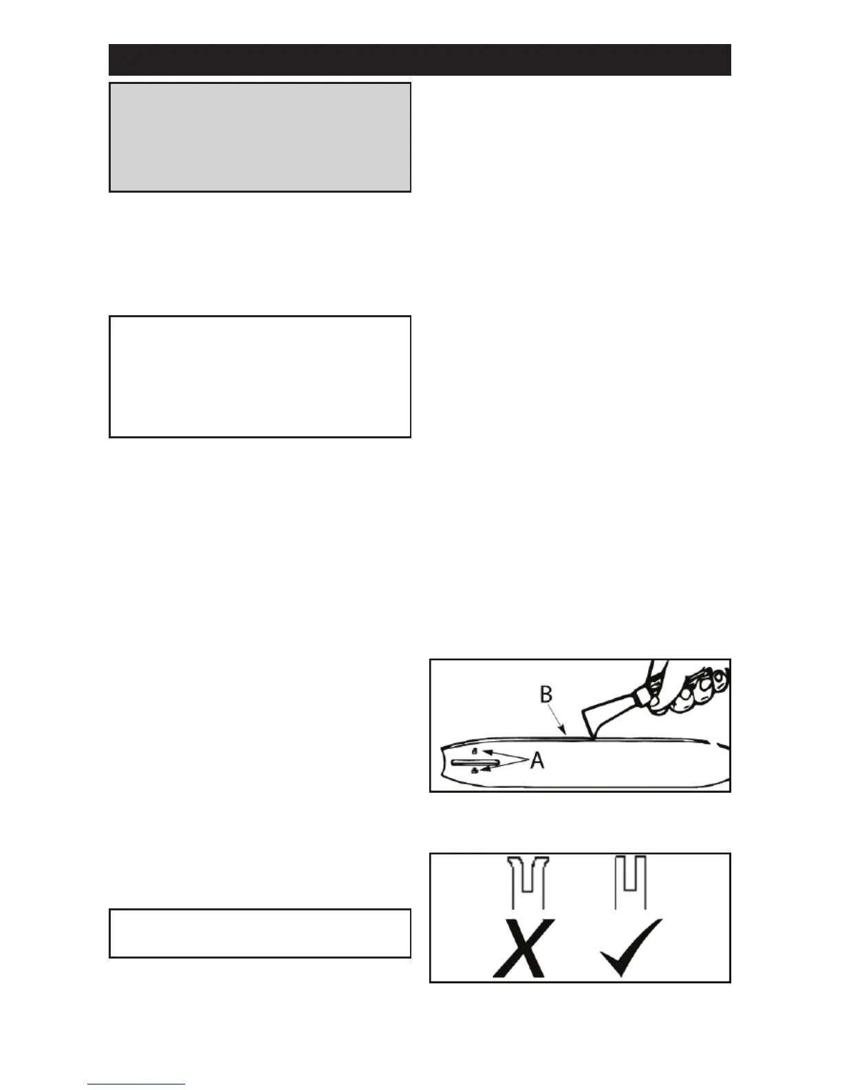 2. Rengjør oljehullene (A) og sverdsporene (B).