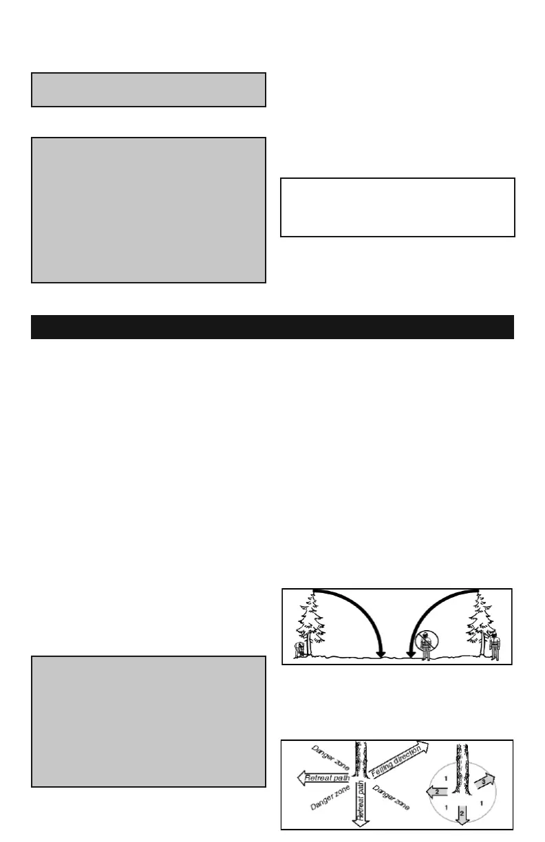 Gefahrenbereich (1), Rückzugsweg (2) und die Fällrichtung (3)