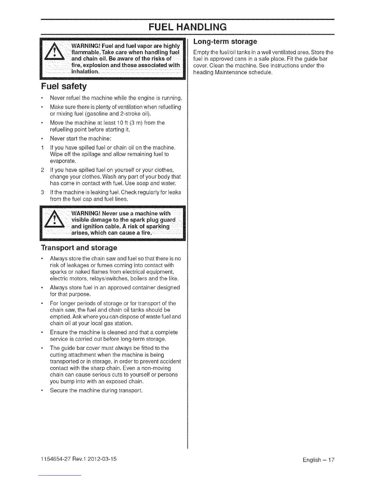 Empty the fuel/oil tanks in a well ventilated area. Store the