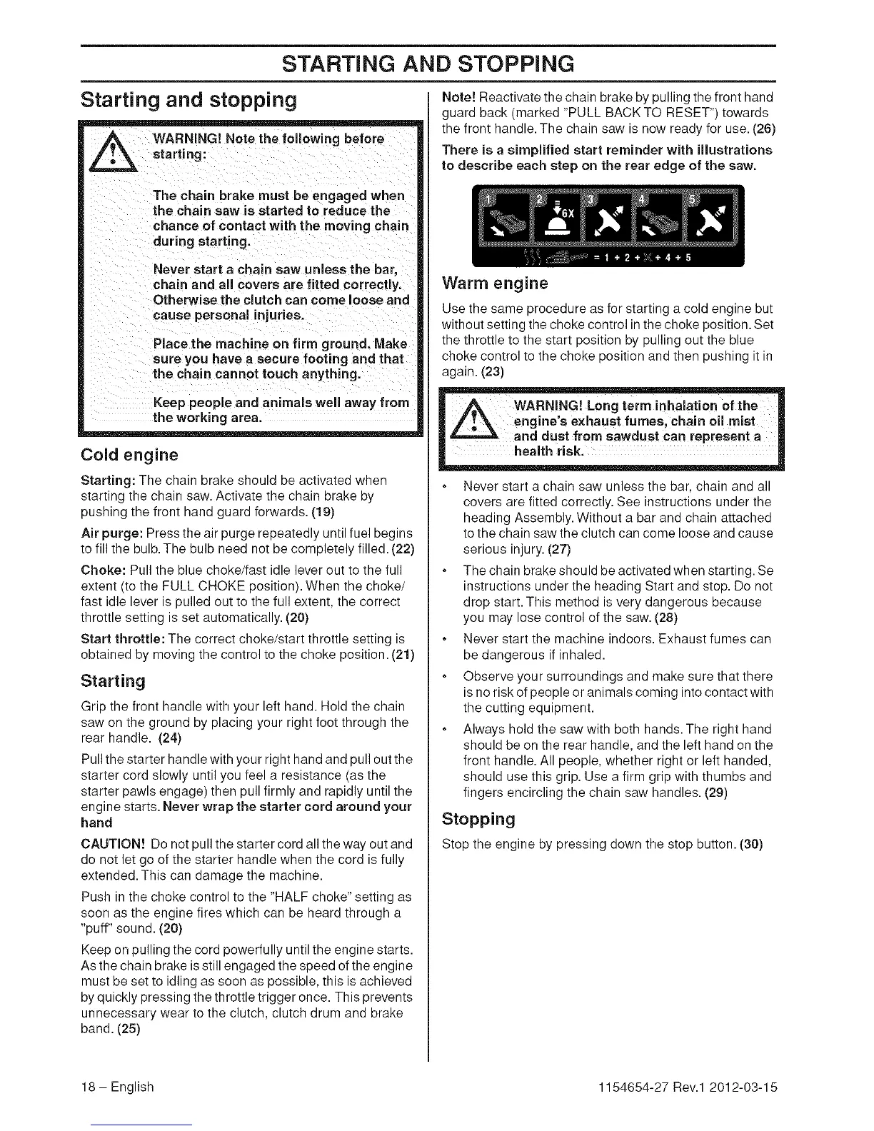 starting the chain saw. Activate the chain brake by