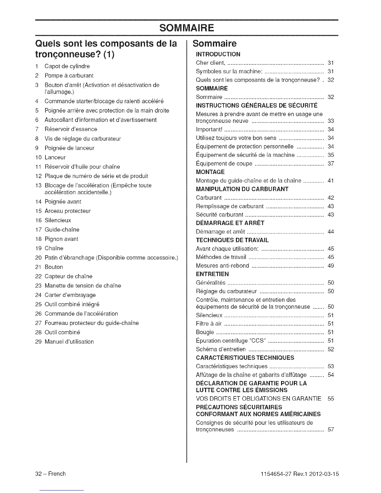 _quipements de s_curit6 de la trongonneuse ....... 50