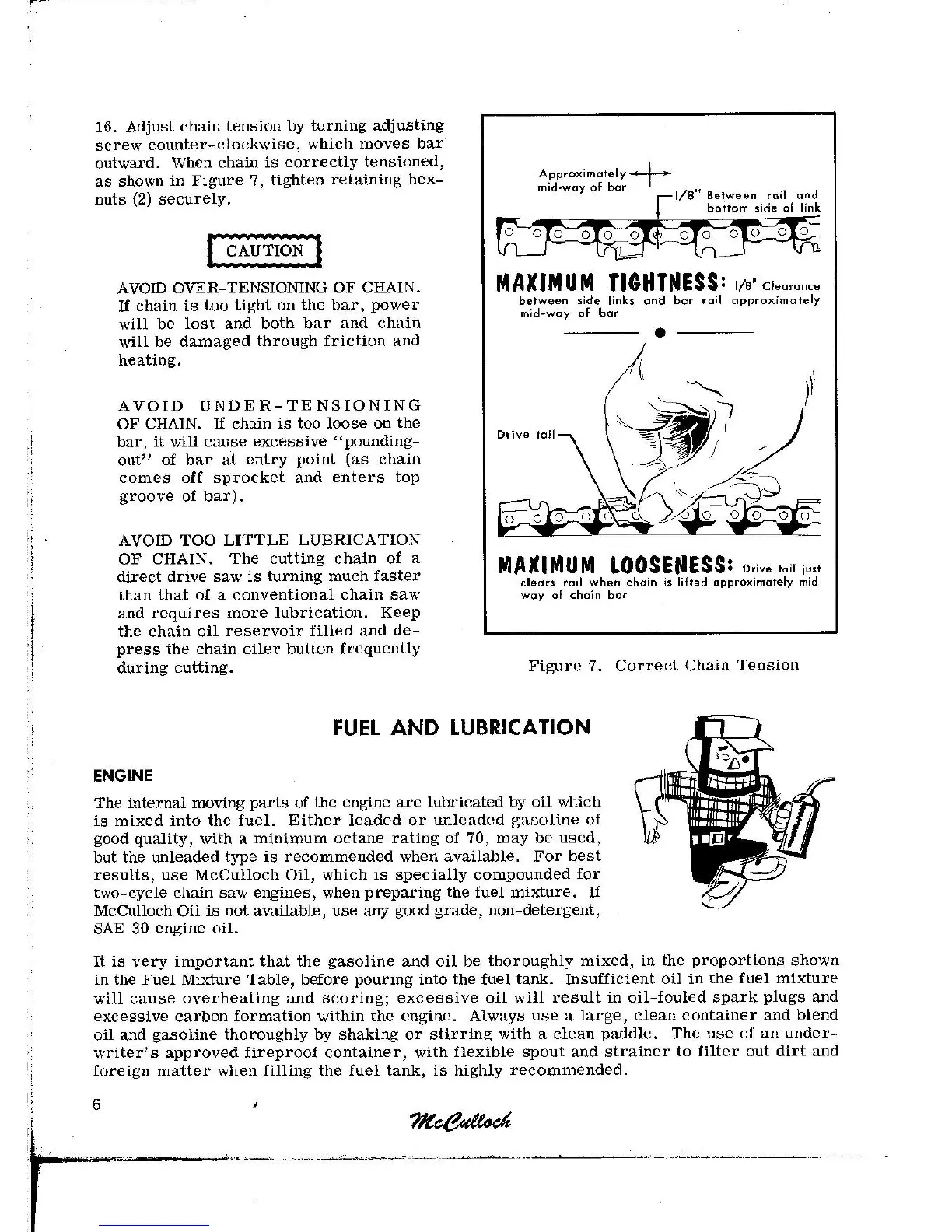 McCulloch D-44 - Fuel and Lubrication; Engine; Chain Oiler