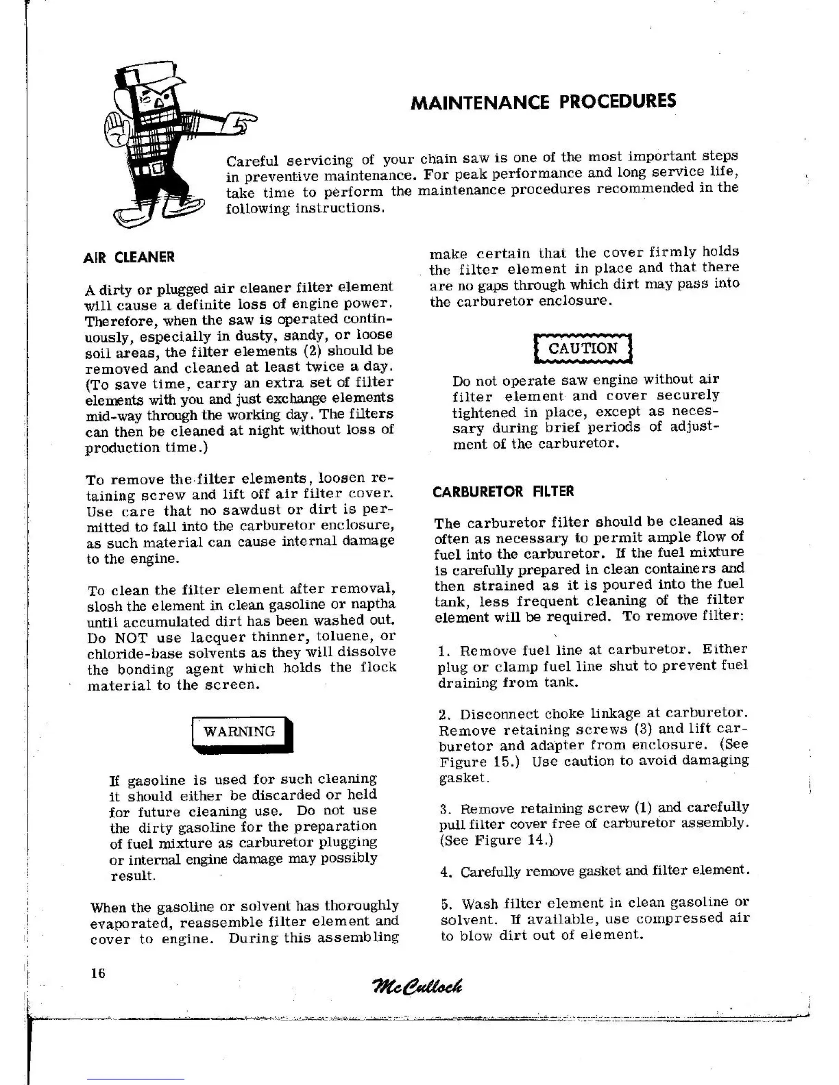 McCulloch D-44 - Maintenance Procedures; Air Cleaner; Carburetor Filter