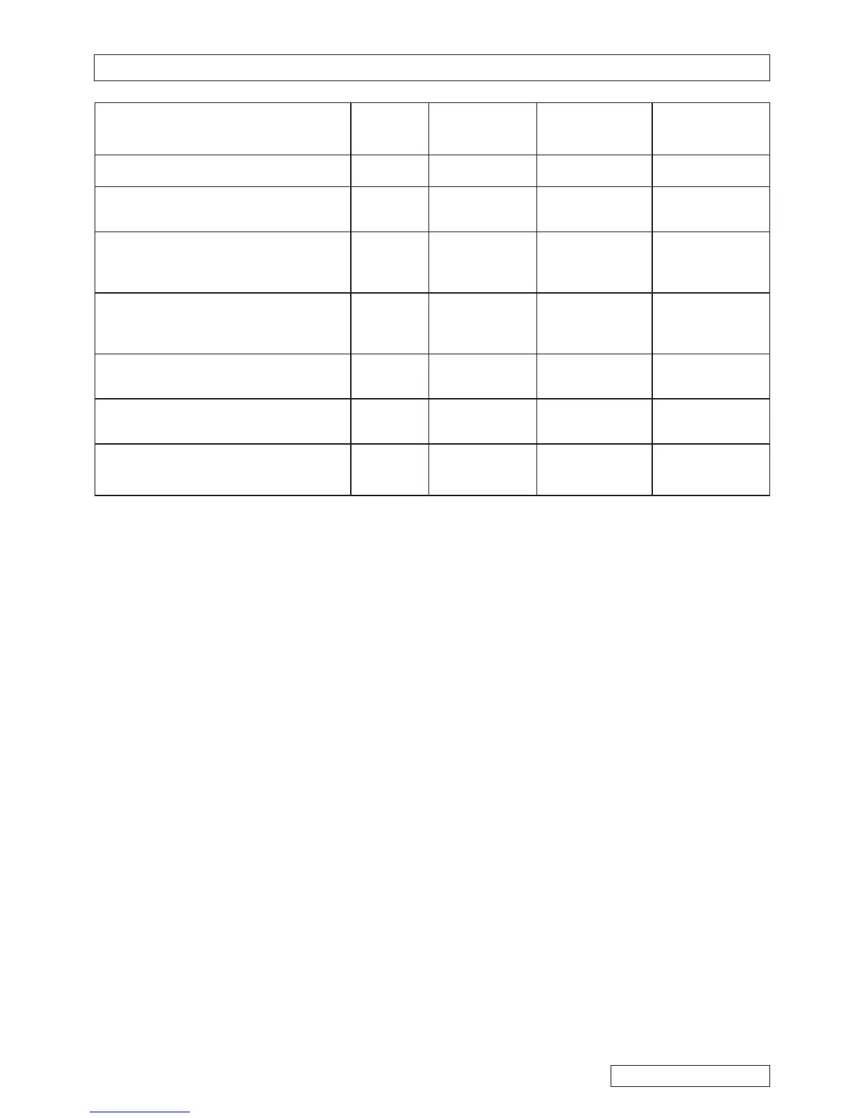 Troubleshooting table