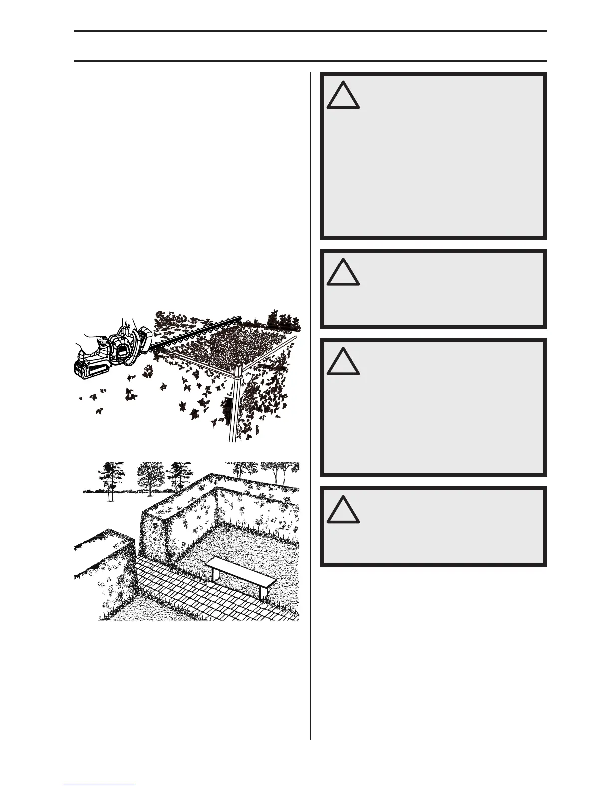 Do not force the hedge trimmer through heavy